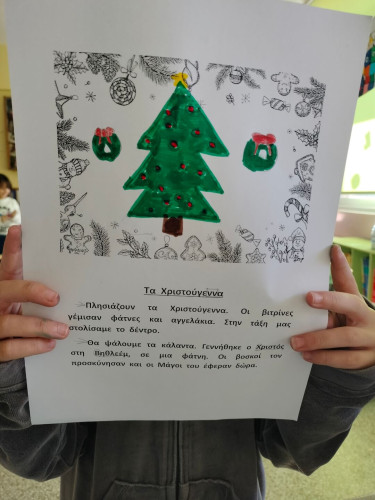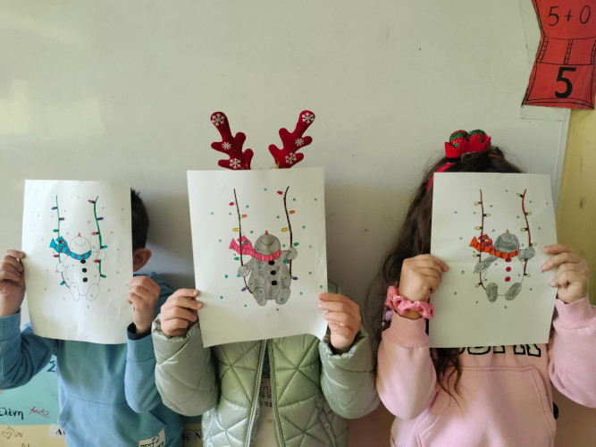 05 Ιανουαρίου 2025Οι μαθητές μας της Α΄ τάξης ευχήθηκαν σε όλους καλή χρονιά με τον πιο καλλιτεχνικό τρόπο. Την Παρασκευή 20 Δεκεμβρίου φιλοτέχνησαν εορταστικές κάρτες και κατασκεύασαν πρωτότυπες πολύχρωμες χιονόμπαλες, για να στολίσουν το χριστουγεννιάτικο δέντρο τους. Ακόμα, ζωγράφισαν ξεχωριστούς αγιοβασίληδες, πανέμορφους ταράνδους και χαρούμενους χιονάνθρωπους.