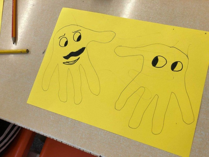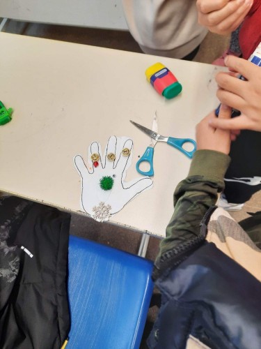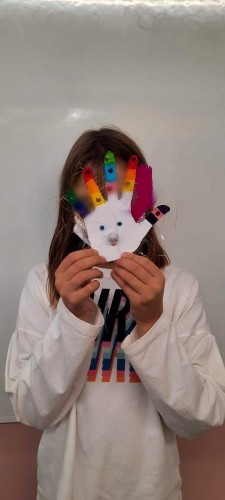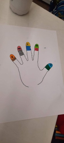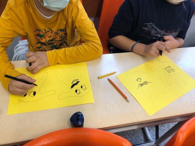 Τέλος, έφτιαξαν τη δική τους διαφορετική «Παλάμη- πρόσωπο» όπου τη φιλοτέχνησε ο κάθε ένας με τον δικό του ευφάνταστο τρόπο και θα τη χρησιμοποιήσουν στο πιο πρωτότυπο Κουκλοθέατρο με θέμα «Ο εαυτός μου: Ελάτε να γνωριστούμε».