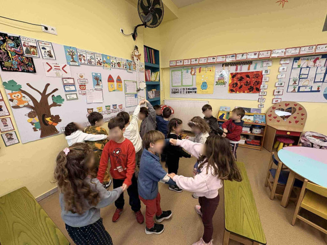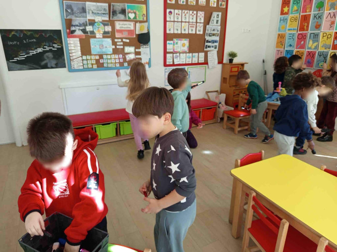 18 Φεβρουαρίου 2026Ήρθε η ώρα που τα νηπιάκια μας «έριξαν» φως στο σκοτάδι και αντιμετώπισαν τους φόβους τους συμμετέχοντας σε παιχνίδια εμπιστοσύνης. Οι μικροί μας επιστήμονες κατασκεύασαν τη φιγούρα του Καραγκιόζη και εκφράστηκαν δημιουργικά παρουσιάζοντας μια αυτοσχέδια παράσταση στο θέατρο σκιών. Τι δραστηριότητες κάνουμε κατά τη διάρκεια της ημέρας και τι αφότου φτάσει η νύχτα; Βιωματικά τα παιδιά κατανόησαν τις βασικές χρονικές έννοιες και τις καθημερινές συνήθειες που ακολουθούμε σύμφωνα με την εμφάνιση του πρωινού ήλιου. Στη συνέχεια οι μαθητές μας πειραματίστηκαν και με βοήθεια φακών φώτισαν αντικείμενα και «γέννησαν» σκιές στο σκοτάδι. Αντιλήφθηκαν πως σύμφωνα με το κάθε υλικό τα αντικείμενα χωρίζονται σε τρεις κατηγορίες: διαφανή, ημιδιαφανή και αδιαφανή. Ακόμα, σχημάτισαν με το σώμα τους σκιές και παρατήρησαν ότι καθώς κινούνταν εκείνοι το ίδιο έκανε και η σκιά τους.