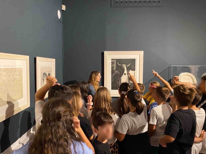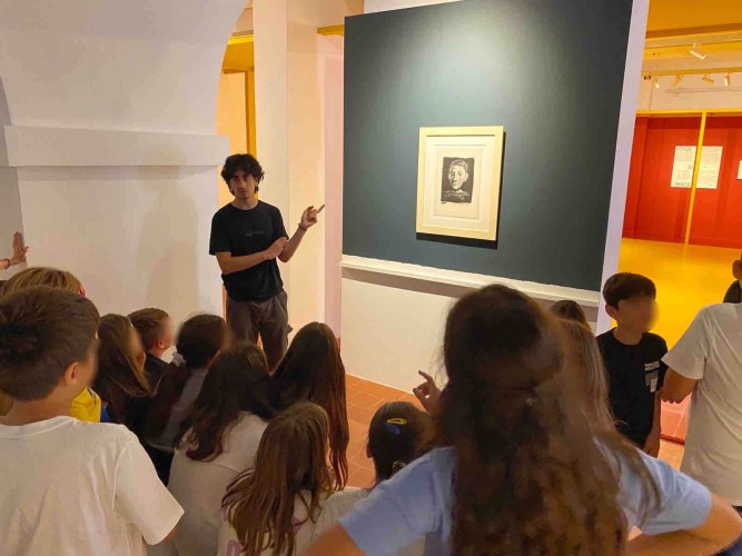 25 Σεπτεμβρίου 2024Για μια πολύτιμη φιλία που έφερε στο φως αριστουργήματα έμαθαν οι μαθητές μας των Δ΄, Ε΄ και Στ΄ τάξεων κατά τη διάρκεια των επισκέψεών τους την Τρίτη 17, την Τετάρτη 18 και την Τετάρτη 25 Σεπτεμβρίου στο MOMus-Μουσείο Σύγχρονης Τέχνης, όπου φιλοξενείται η έκθεση έργων του παγκοσμίως γνωστού εικαστικού δημιουργού Πάμπλο Πικάσο. Η χρόνια στενή σχέση του καλλιτέχνη με τον κουρέα Eugenio Arias έγινε η αιτία, όσο ο ίδιος ήταν αυτοεξόριστος στη Γαλλία, να φιλοτεχνήσει σχέδια και έργα που συχνά χάριζε στον φίλο του και συνήθως συνοδεύονταν από κείμενα που προορίζονταν γι’ αυτόν. Οι δημιουργίες αυτές με τίτλο «Pablo Picasso: Εξορία και νοσταλγία» ταξίδεψαν για πρώτη φορά εκτός Ισπανίας. Οι μαθητές μας που επισκέφθηκαν την έκθεση στη Μονή Λαζαριστών, στο πλαίσιο του μαθήματος της εικαστικής αγωγής, εντυπωσιάστηκαν και διέκριναν στα έργα του Picasso τη νοσταλγία για την πατρίδα του, την αγάπη του στον κόσμο της Μεσογείου, καθώς και την αδυναμία του στους ταύρους. Στο τέλος της περιήγησης τα παιδιά μας έγιναν «καλλιτέχνες» και με την τεχνική της μονοκοντυλιάς φιλοτέχνησαν τις δικές τους μοναδικές ζωγραφιές που απεικονίζαν πρόσωπα συμμαθητών τους. Η έκθεση συνδιοργανώνεται με το Museo Casa Natal Picasso της Μάλαγας, γενέτειρας του ζωγράφου.