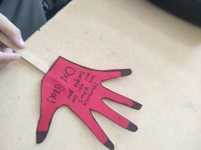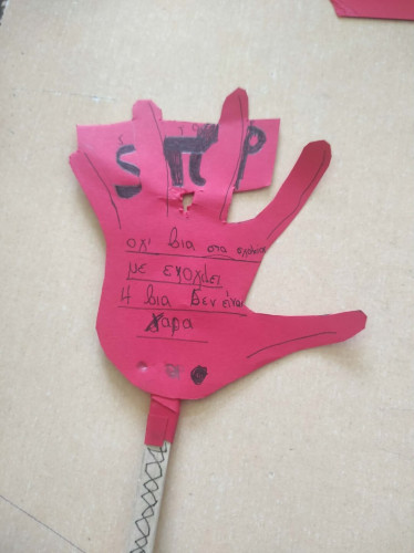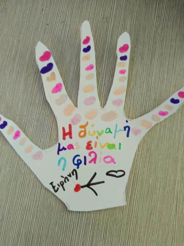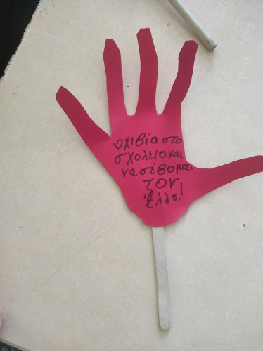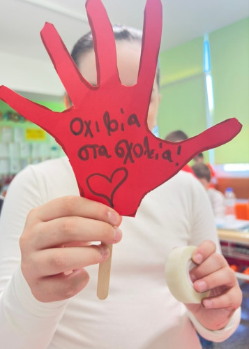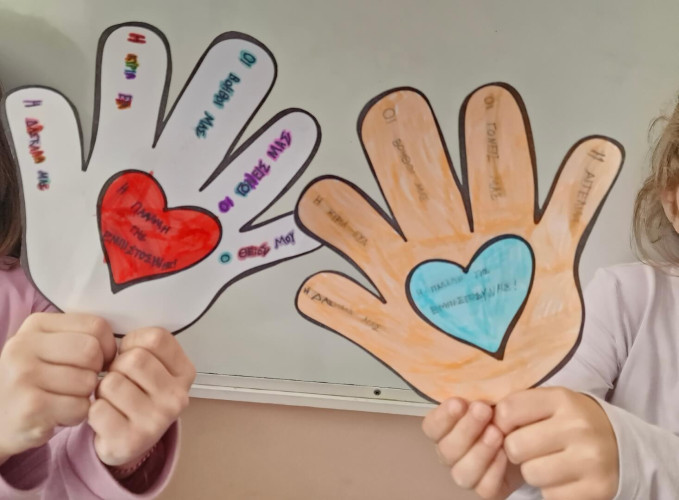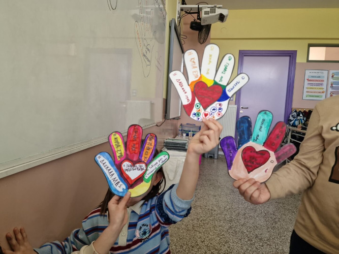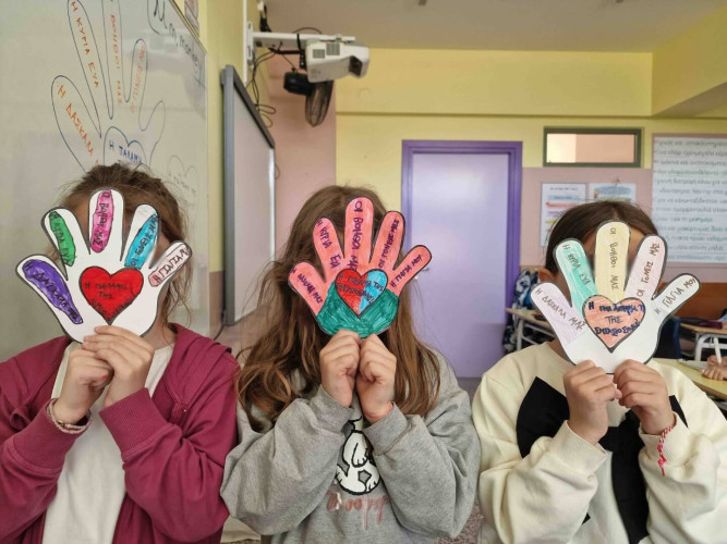 09 Μαρτίου 2026Τι είναι αυτό που ονομάζουμε βία στα σχολεία; Πώς την αναγνωρίζουμε; Τι κάνουμε για να βοηθήσουμε όποιον και όποια τη βιώνει; Με αφορμή την Πανελλήνια Ημέρα κατά της Σχολικής Βίας οι μαθητές μας συμμετείχαν σε ποικίλες δράσεις με στόχο την καλλιέργεια της ενσυναίσθησης. Τα πρωτάκια μας αφού παρακολούθησαν το εκπαιδευτικό βίντεο που δημιουργήθηκε πριν μερικά χρόνια από το τμήμα Πληροφορικής μας συζήτησαν και έδωσαν απαντήσεις στα παραπάνω ερωτήματα. Έπειτα έφτιαξαν την «παλάμη της εμπιστοσύνης» με τα άτομα που πάντα τους στηρίζουν και αποτελούν το δικό τους δίκτυο ασφαλείας. Οι μαθητές μας της Β΄τάξης αποφάσισαν να «σκορπίσουν» όμορφα μηνύματα υπενθυμίζοντάς μας πόσο σημαντικό είναι να σεβόμαστε ο ένας τον άλλον. Τα παιδιά «φορώντας» ένα χαρτί στην πλάτη κινήθηκαν ελεύθερα στην τάξη και όποιον συμμαθητή τους συναντούσαν έγραφαν το καλύτερο πράγμα που πιστεύουν γι’ αυτόν. Οι μαθητές της Γ΄τάξης κατασκεύασαν το δικό τους συμβολικό “STOP” σημειώνοντας φράσεις που δείχνουν πώς βάζουμε τα όριά μας και «σπάμε» τη σιωπή μας. Συζήτησαν για τη σημασία του σεβασμού στις σχέσεις και πώς μπορούμε να αναγνωρίσουμε και στη συνέχεια να εκφράσουμε όσα μας ενοχλούν. Μέσα από παιχνίδια ρόλων με σενάρια παρενόχλησης και εκφοβισμού, τα παιδιά προσπάθησαν να πάρουν τη θέση του θύματος, θύτη και του παρατηρητή με σκοπό να κατανοήσουν καλύτερα τις σκέψεις και τα συναισθήματα.
