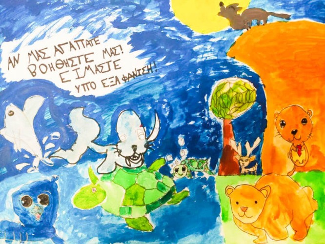 19 Απριλίου 2021Πώς μπορούμε άραγε με μικρές πράξεις-δράσεις να προστατεύσουμε την πλούσια πανίδα του πλανήτη μας; Ένα στα οκτώ εκατομμύρια είδη ζώων παγκοσμίως κινδυνεύει με εξαφάνιση σύμφωνα με τη Διεθνή Ένωση Προστασίας της Φύσης. Οι μαθητές μας της Β΄ τάξης συζήτησαν για τα απειλούμενα είδη στο άμεσο μέλλον και έφτιαξαν ζωγραφιές προτάσσοντας το δικό τους μήνυμα: «Να αγαπάτε τα ζώα και να φροντίζετε το περιβάλλον!».