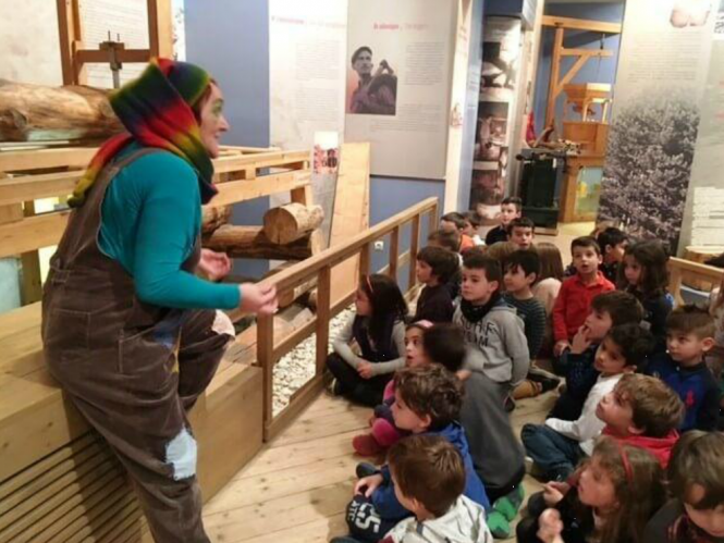 Στο θεατρικό δρώμενο που παρακολούθησαν, η θεία Αγγέλα, ένα πρόσωπο που συνδυάζει την Παράδοση με το Σήμερα, τα υποδέχτηκε, έκανε αστεία μαζί τους και με αφορμή ένα ρούχο, ένα στολίδι, έναν τόπο διηγήθηκε ιστορίες. Όπως αυτή για τον Ρούλη τον Καλικαντζαρούλη, ο οποίος ξέμεινε κατά λάθος στη γη, στο Νερόμυλο του κυρ-Κώστα. Φράσεις, ποιήματα και τραγούδια συνδυασμένα με κινήσεις και ερωτήσεις εμπλούτισαν την εμπειρία και έκαναν την επίσκεψη ακόμα πιο συναρπαστική.