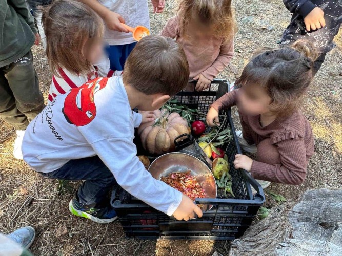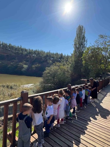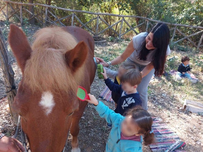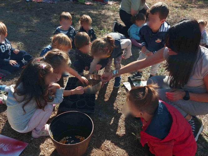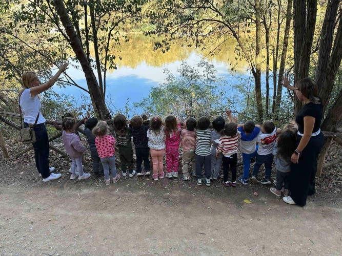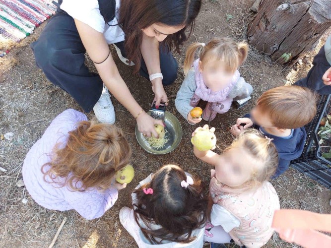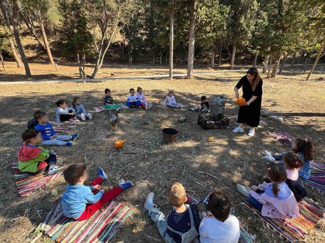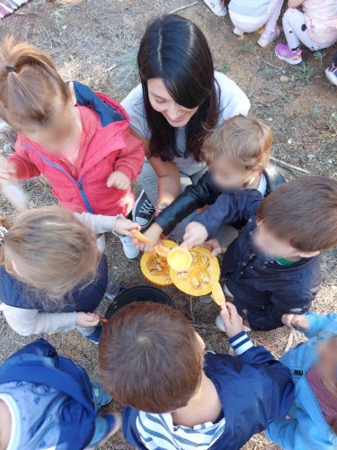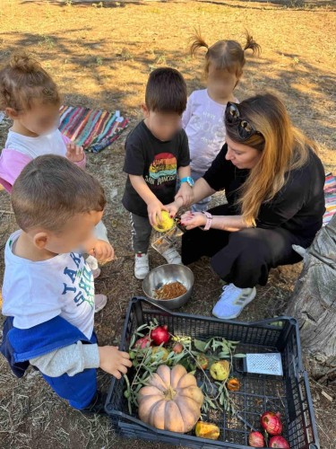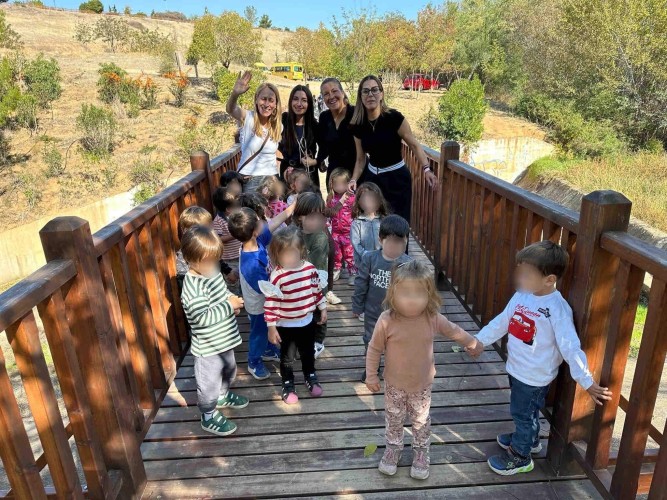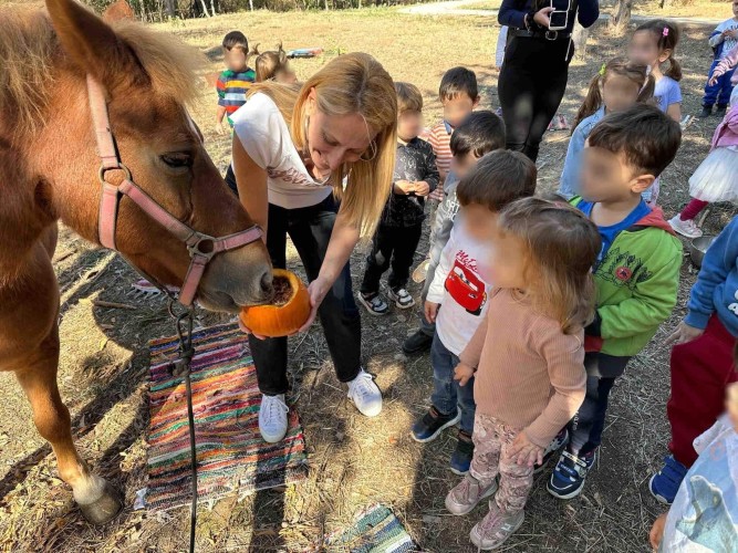 22 Οκτωβρίου 2024Μια ξεχωριστή εξόρμηση στο περιβαλλοντικό φράγμα Θέρμης με την ομάδα «Ιχνηλάτης Ονείρων» έκαναν τα προ-προνηπιάκια μας του Παιδικού Σταθμού «Πρότυπα 2-4» και εξερεύνησαν τον κόσμο των φρούτων και των λαχανικών του φθινοπώρου συμμετέχοντας σε ψυχαγωγικά παιχνίδια κινητικότητας, μνήμης και γρίφους. Με τη βοήθεια των παιδαγωγών τους «μαγείρεψαν» κολοκυθόσουπα, φύτεψαν με τα χεράκια τους σπόρους κολοκύθας και δημιούργησαν ένα πρωτότυπο σκιάχτρο από φυσικά υλικά, όπως ξύλα και κουκουνάρια. Κατά τη διάρκεια του περιπάτου τους στο πλούσιο φυσικό περιβάλλον γνώρισαν την Πέρλα, ένα πανέμορφο πόνυ, που με χαρά και ενθουσιασμό ανέλαβαν να το φροντίσουν. Με αγάπη και στοργή τα παιδιά μας χτένισαν τη χαίτη της νέας τους φίλης, την περιποιήθηκαν και έφτιαξαν μια μοναδική «τούρτα» για τα γενέθλιά της με τις αγαπημένες της λιχουδιές, ρόδια και κυδώνια.