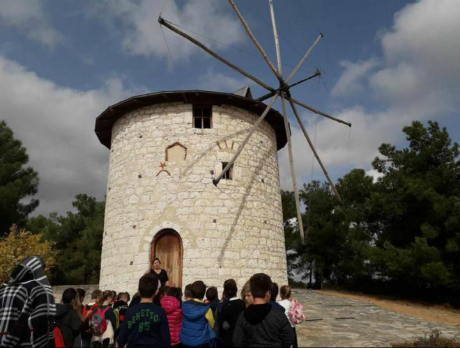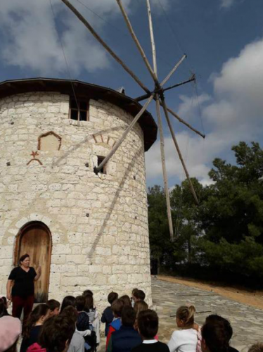Τα παιδιά ενθουσιασμένα από τις ιστορίες των γλυκύτατων γυναικών έμαθαν για τον παραδοσιακό ξυλόφουρνο, τη λάμπα λαδιού, την πινακωτή και φυσικά το ζύμωμα του ψωμιού με προζύμι... Αφού ζύμωσαν τα δικά τους ψωμάκια και τα έβαλαν στον φούρνο, επισκεφτήκαμε τον "Γίγαντα Ανεμόμυλο" όπως ονόμασαν τον παλιό μύλο του χωριού που στέκει αγέρωχος στην πλαγιά. Η εκδρομή ολοκληρώθηκε με παιχνίδι στην παιδική χαρά του χωριού κι ένα πικ - νικ με παραδοσιακά εδέσματα που μας πρόσφεραν οι κυρίες απλόχερα..