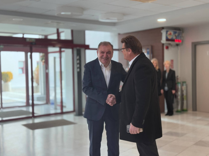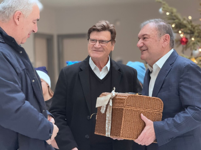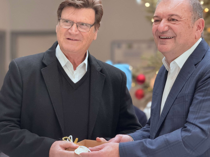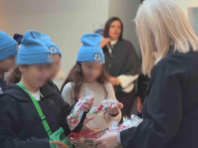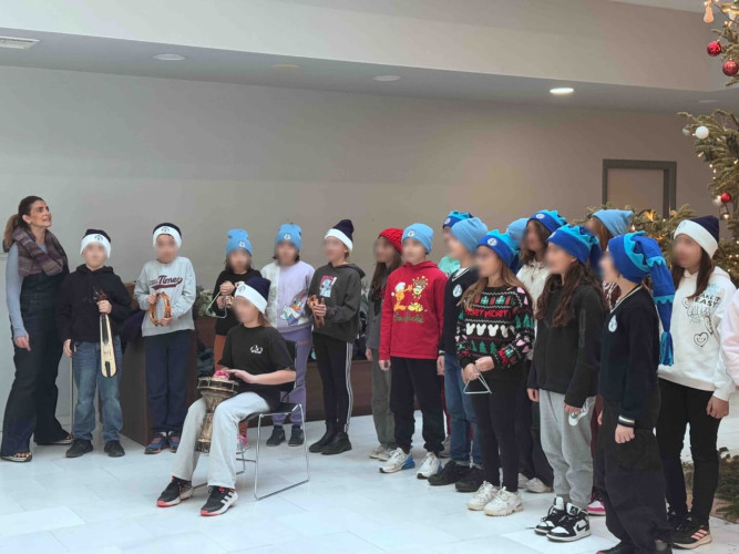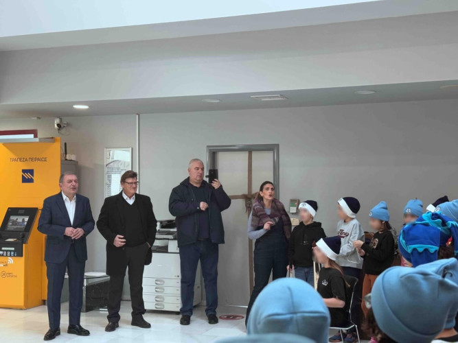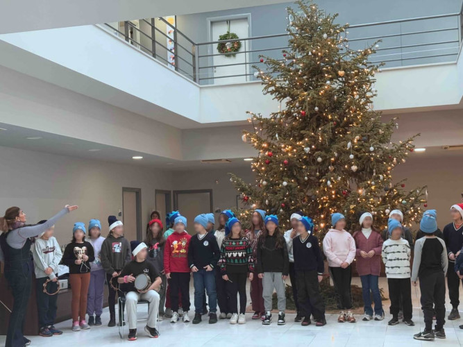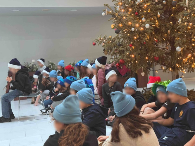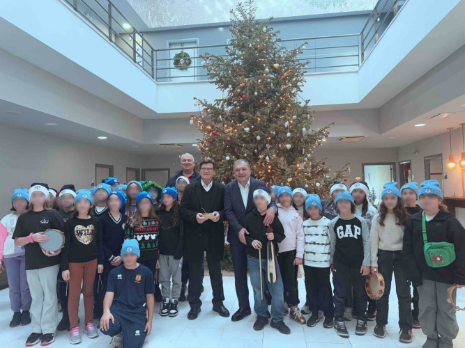 20 Δεκεμβρίου 2024Με τα τριγωνάκια τους στα χέρια, φορώντας τα γιορτινά τους σκουφάκια και γεμάτα ενθουσιασμό τα παιδιά μας της Ε΄ τάξης, συνοδευόμενα από τον διευθυντή και την καθηγήτρια μουσικής του Σχολείου μας, την Παρασκευή 20 Δεκεμβρίου έψαλαν στον δήμαρχο Πυλαίας-Χορτιάτη, Ιγνάτιο Καϊτεζίδη, τα παραδοσιακά κάλαντα. Ανήμερα της ονομαστικής του εορτής το δημαρχείο «πλημμύρισε» από τις παιδικές φωνές και τις χριστουγεννιάτικες μελωδίες των μαθητών μας. Ο δήμαρχος με μεγάλη χαρά ευχαρίστησε τα παιδιά και ευχήθηκε σε όλους υγεία και αγάπη, ενώ ακολούθησε το καθιερωμένο παραδοσιακό κέρασμα. Η μαγεία των Χριστουγέννων υπάρχει μέσα στις καρδιές μας και εκφράζεται στις πιο απλές στιγμές.
