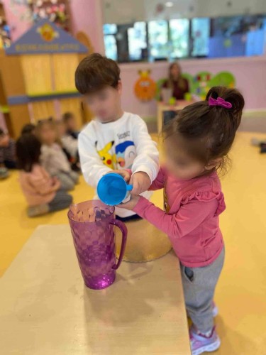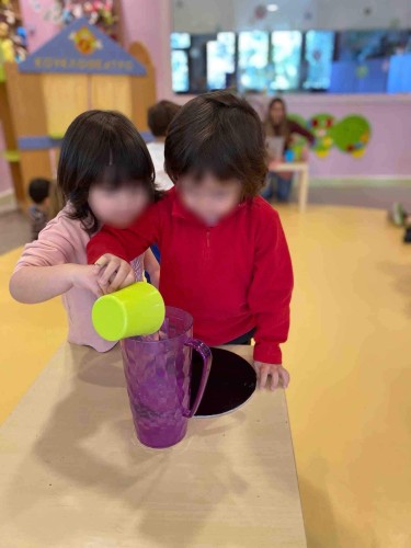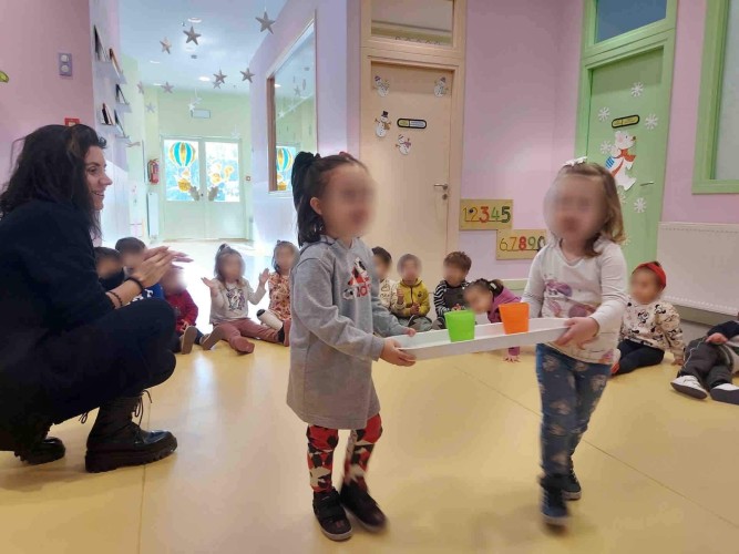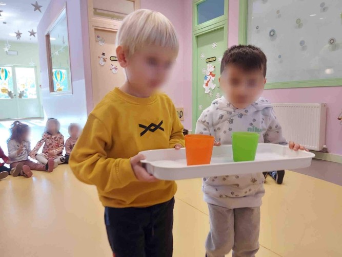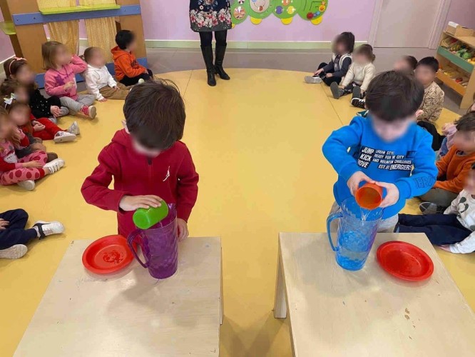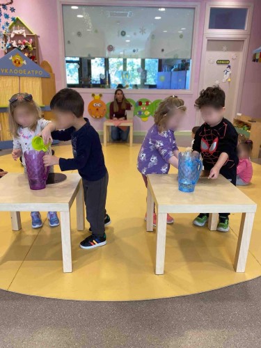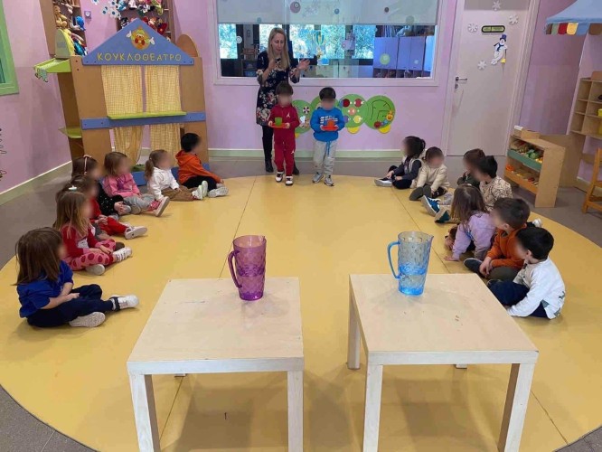 20 Μαρτίου 2024«Νεροκουβαλήματα» έγιναν στη σάλα του Παιδικού Σταθμού «Πρότυπα 2-4» και τα μικρά μας βίωσαν την έννοια της συνεργασίας με παιχνίδι και πολύ γέλιο! Στο πλαίσιο της θεματικής ενότητας «Σωστή διατροφή για να είμαστε γεροί!», τα παιδιά μας σχημάτισαν δύο ομάδες και καθεμιά είχε στόχο να γεμίσει με νερό τη δική της κανάτα γρηγορότερα από την άλλη. Προσπάθησαν, με την ενθάρρυνση των συμμαθητών τους, να μεταφέρουν από μικρή απόσταση ποτήρια με νερό, που ήταν τοποθετημένα πάνω σε έναν δίσκο, προσέχοντας να μη ρίξουν το περιεχόμενό τους κάτω. Στη συνέχεια, γέμιζαν την κανάτα της ομάδας τους με νερό!