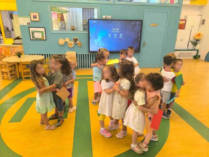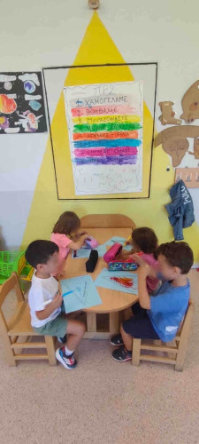 22 Σεπτεμβρίου 2025Το Νηπιαγωγείο μας είναι μια μεγάλη αγκαλιά που γεμίζει με αγάπη τις καρδιές όλων μας και ειδικά των μικρών μας μαθητών. Τα προνηπιάκια μας ξεκίνησαν τη νέα σχολική χρονιά με πολύ χαρά και αμέτρητες δημιουργίες. Αρχικά, συνέταξαν το «συμβόλαιο των κανόνων» του Σχολείου, έμαθαν τις μέρες, τους μήνες, τις εποχές και γνώρισαν τη ρουτίνα της τάξης. Ποιος είναι «Σωστός φίλος»; Συζήτησαν και ανακάλυψαν τη σημασία του και «σκόρπισαν αγάπη» ο ένας στον άλλον με μια μεγάλη χάρτινη καρδιά. Σε συνεργασία, τα παιδιά μας φιλοτέχνησαν την πρώτη τους ομαδική εργασία, ζωγράφισαν τους συμμαθητές τους και τραγούδησαν για τη φιλία. Στη συνέχεια, ανέπτυξαν τις κινητικές τους δεξιότητες συμμετέχοντας στο παιχνίδι με τα πολύχρωμα μαντίλια, έπαιξαν παντομίμα αναπαριστώντας το «Ξυπνάω και πάω στο σχολείο» και στο τέλος ταξινόμησαν τα παιχνίδια τους σε ομάδες. Ευχόμαστε η φετινή χρονιά να είναι γεμάτη με σεβασμό, καλοσύνη και αγάπη.