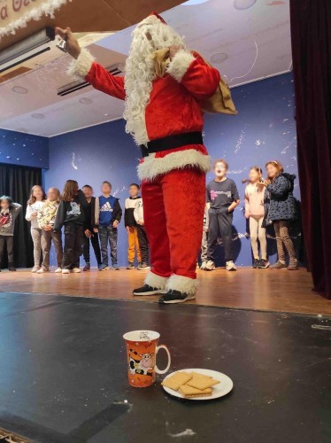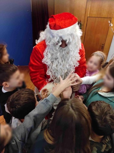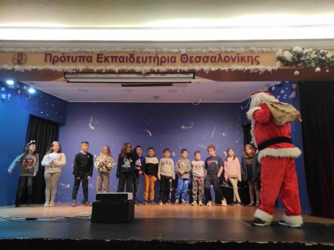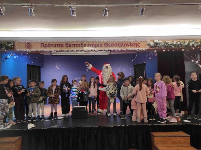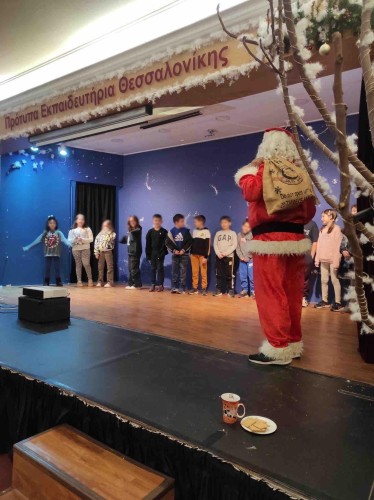 27 Δεκεμβρίου 2023Λίγο πριν αποχαιρετήσουμε τον παλιό χρόνο και πάρει τη θέση του ο νέος, τα παιδιά μας στο πρόγραμμα Δημιουργικής Απασχόλησης του Δημοτικού έζησαν στο έπακρο τη μαγεία των εορτών. Την τελευταία ημέρα της χρονιάς στο Σχολείο μας, Παρασκευή 29 Δεκεμβρίου, παρακολούθησαν με μεγάλη χαρά την αγαπημένη τους χριστουγεννιάτικη ταινία «Klaus» στην αίθουσα πολλαπλών χρήσεων του σχολείου μας. Μετά την προβολή, απόλαυσαν ένα πρωτοχρονιάτικο θεατρικό δρώμενο που παρουσίασαν μαθητές της Γ΄ τάξης, ξεδιπλώνοντας το υποκριτικό τους ταλέντο. Οι εκπλήξεις συνεχίστηκαν! Τα παιδιά μας κάλεσαν τον Αϊ-Βασίλη και… γεμάτα ενθουσιασμό τον είδαν να έρχεται στη σκηνή χτυπώντας το κουδουνάκι του και κρατώντας τον γεμάτο δωράκια σάκο του. Οι μαθητές, παρά το αρχικό τους ξάφνιασμα, τον υποδέχτηκαν με πλατιά χαμόγελα και του έψαλαν, όλοι μαζί με μια φωνή, τα κάλαντα της Πρωτοχρονιάς, τα οποία και αποτέλεσαν κομμάτι της γιορτής μας. Εκείνος τους έδωσε από ένα τριγωνάκι για να… «τα πουν» σε φίλους και συγγενείς την παραμονή της νέας χρονιάς, κατά το έθιμο, και μοίρασε σε όλους καραμέλες και πολλές ευχές. Τα παιδιά μας τον ευχαρίστησαν και δε χάσαμε την ευκαιρία να βγάλουμε κάμποσες φωτογραφίες, για να απαθανατίσουμε την όμορφη στιγμή.