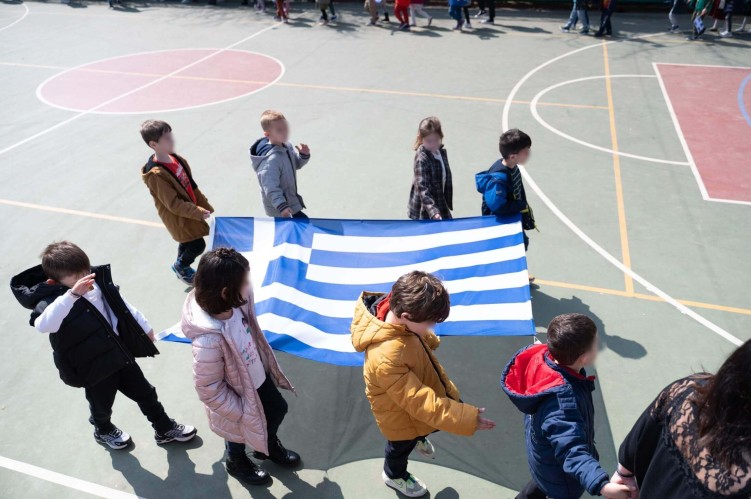 Φυσικά, όλα αυτά έγιναν υψώνοντας υπερήφανα με τα χεράκια τους τη Γαλανόλευκη και τις σχετικές κατασκευές της σημαίας με τις οποίες είχαν ασχοληθεί, παρέα με τις νηπιαγωγούς μας.