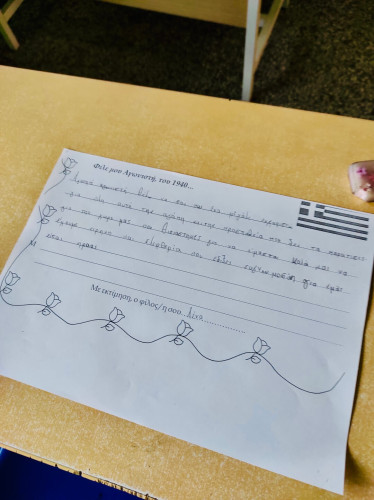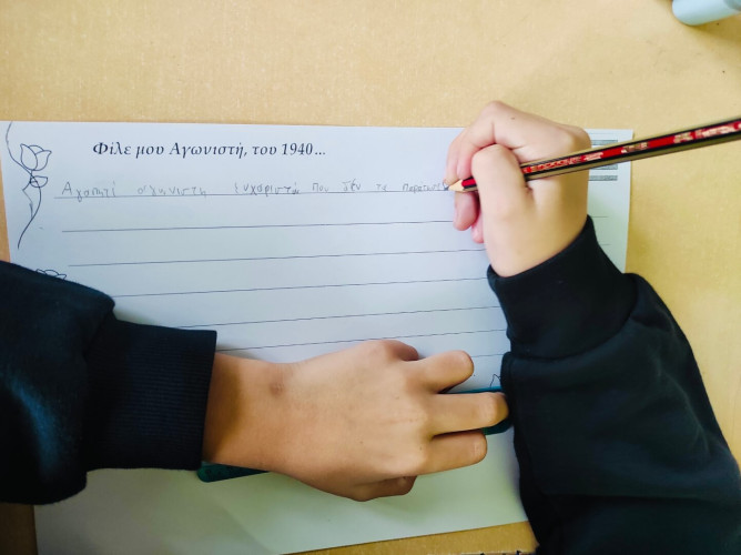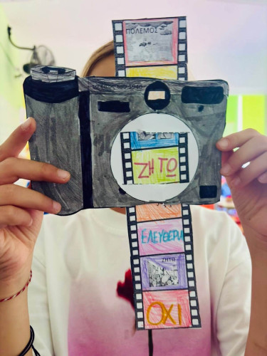 29 Οκτωβρίου 2025Τις ηρωικές στιγμές της ελληνικής ιστορίας γνώρισαν οι μαθητές μας της Γ΄ τάξης, με αφορμή την εθνική επέτειο της 28ης Οκτωβρίου, μέσα από ποικίλες δραστηριότητες. Το ταξίδι ξεκίνησε από τη Θεσσαλονίκη, μαθαίνοντας για την 26η Οκτωβρίου, ημέρα της απελευθέρωσης της πόλης μας, και για τον Άγιο Δημήτριο, τον πολιούχο της. Πώς ένιωσαν άραγε οι Έλληνες τότε, όταν άκουσαν το χαρμόσυνο μήνυμα της λευτεριάς; Στη συνέχεια, τα παιδιά παρακολούθησαν με ενδιαφέρον την αφήγηση για τα γεγονότα του 1940, συζήτησαν για τους αγωνιστές που αντιστάθηκαν υπέρ του μεγάλου «Όχι» και εξέφρασαν τη συγκίνησή τους γράφοντας ένα γράμμα ευγνωμοσύνης σε έναν πολεμιστή της εποχής. Με λόγια απλά αλλά γεμάτα συναίσθημα ευχαρίστησαν τους προγόνους που πολέμησαν για την ελευθερία και την ειρήνη. Αφού έφτιαξαν τη δική τους κάμερα με κινούμενο φιλμ, πρόβαλαν μέσα από τις ζωγραφιές τους μικρές σκηνές από τα χρόνια του πολέμου, της ειρήνης και της ελευθερίας.