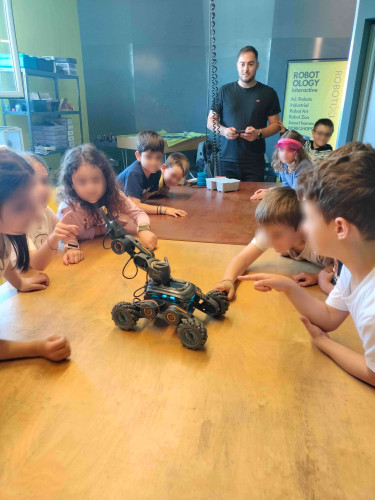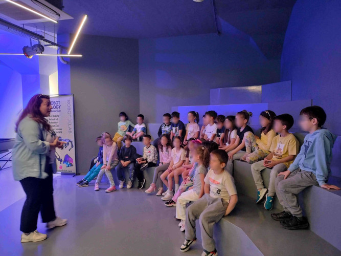 14 Μαΐου 2025Την Πέμπτη 8, την Παρασκευή 9 και την Τετάρτη 14 Μαΐου οι μαθητές μας της Α΄ τάξης επισκέφθηκαν το εκπαιδευτικό κέντρο Robotixlab και παρακολούθησαν το πρόγραμμα «Ρομπότ, ψηφιακά όνειρα του αύριο ή ηλεκτρικά πρόβατα του σήμερα;». Η επίσκεψη πραγματοποιήθηκε στο πλαίσιο της 4ης θεματικής ενότητας των Εργαστηρίων Δεξιοτήτων «Δημιουργώ και Καινοτομώ» με τίτλο: «Ανακαλύπτω και προσανατολίζομαι» και μέσω αυτής τα παιδιά μας έμαθαν για τα ρομπότ. Κατασκεύασαν και προγραμμάτισαν πολλά μικρά ρομποτάκια και στη συνέχεια παρατήρησαν και ανέλυσαν τη λειτουργία και τη δομή των ρομποτικών συστημάτων. Ακόμα, ενεργοποίησαν ρομποτικούς βραχίονες και mobile robots με πολλούς αισθητήρες. Με βιωματικό τρόπο οι μικροί μας μαθητές εισήχθησαν στη «μαγεία» του προγραμματισμού μέσα από απλές και παράλληλα διασκεδαστικές δραστηριότητες.