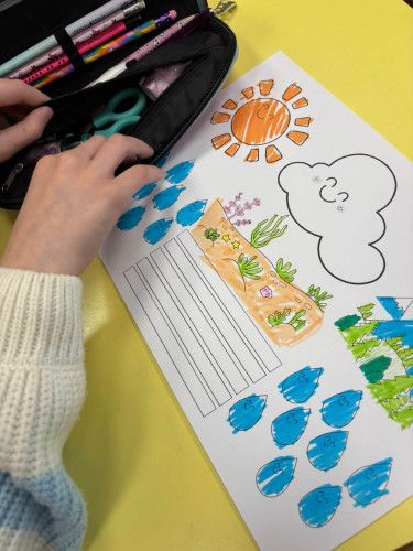 30 Ιανουαρίου 2026Για τον κύκλο του νερού ενημερώθηκαν οι μαθητές μας της Β΄ τάξης στο μάθημα της Μελέτης περιβάλλοντος, διαθεματικά με το Εργαστήριο Δεξιοτήτων. Αφού έμαθαν πώς το νερό ταξιδεύει στη φύση και αντιλήφθηκαν πόσο σημαντική είναι η ηλιακή ακτινοβολία και η βροχή για την επιτυχή ολοκλήρωση του υδρολογικού κύκλου δημιούργησαν μια κατασκευή αποτυπώνοντας όσα διδάχθηκαν. Τα σύννεφα δημιουργούν τη βροχή, η οποία είναι απαραίτητη για την ανάπτυξη των φυτών και έρχεται η ώρα που ο ήλιος παίρνει τη θέση τους κάνοντας τον πλανήτη πιο φωτεινό και πιο πράσινο. Τα παιδιά αντιλήφθηκαν ότι το νερό είναι το πολυτιμότερο αγαθό και είναι απαραίτητο για τη ζωή και το περιβάλλον.