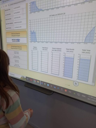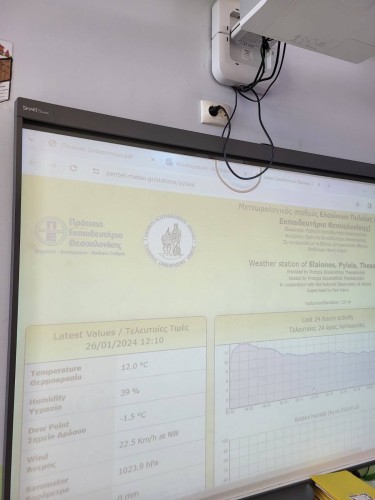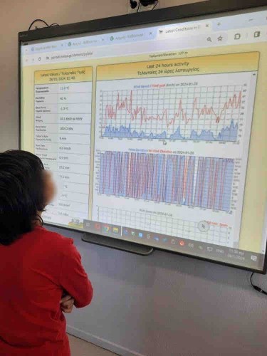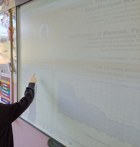 12 Φεβρουαρίου 2024Το νέο μας απόκτημα κέντρισε το ενδιαφέρον των μαθητών του Σχολείου μας και ιδιαίτερα της Γ΄ τάξης που άδραξαν αμέσως την ευκαιρία για να παρατηρήσουν και να ερευνήσουν τις κλιματικές συνθήκες και το μικρόκλιμα της περιοχής μας, στο πλαίσιο του 2ου πυλώνα των Εργαστηρίων Δεξιοτήτων «Δημιουργώ και Καινοτομώ» με θέμα «Τα τέσσερα στοιχεία της φύσης και οι βιώσιμοι στόχοι της Ευρώπης». Τα παιδιά μας στην ιστοσελίδα του μετεωρολογικού μας σταθμού παρατήρησαν και μελέτησαν τους πίνακες και τα γραφήματα με τις τιμές των κλιματολογικών στοιχείων, όπως η υγρασία, ο άνεμος και η θερμοκρασία, την οποία καταγράφουν καθημερινά στο δικό τους ημερολόγιο. Μέσα από αυτήν την ενασχόληση οι μαθητές μας κατανοούν τη μεταβλητότητα του καιρού και θέτουν ερωτήματα που γίνονται αφορμή για γόνιμες συζητήσεις σχετικά με την έννοια της κλιματικής αλλαγής και τις επιπτώσεις της στη διαμόρφωση των εποχών του έτους.