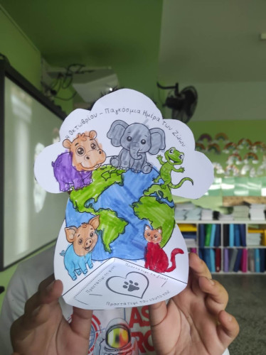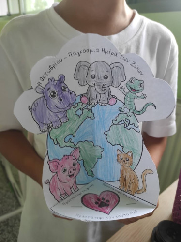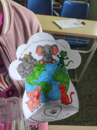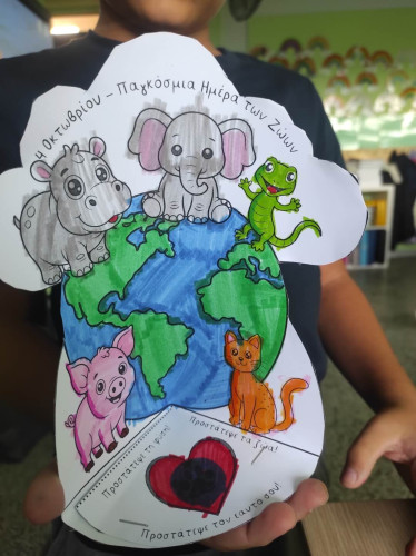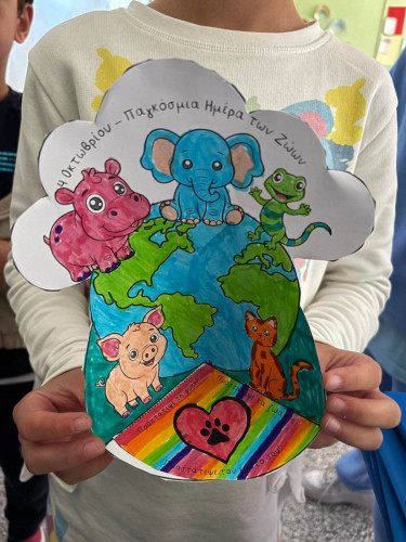 09 Οκτωβρίου 2025Τα ζώα είναι οι καλύτεροι φίλοι μας και μας κρατούν συντροφιά για μια ζωή. Με αφορμή την Παγκόσμια Ημέρα των Ζώων στις 4 Οκτωβρίου οι μαθητές μας της Γ΄ τάξης συζήτησαν για τα δικαιώματά των έμβιων συγκατοίκων μας στον πλανήτη και πληροφορήθηκαν πόσο σημαντικό είναι να τους συμπεριφερόμαστε με τρυφερότητα, στοργή και σεβασμό. Μίλησαν για τους τρόπους με τους οποίους μπορούμε να δείχνουμε φροντίδα σε όλα τα ζώα, με σκοπό να επιτευχθεί η καλύτερη διαβίωσή τους, είτε είναι κατοικίδια είτε ζουν ελεύθερα στη φύση. Ακόμα, ενημερώθηκαν πως η υπευθυνότητα είναι ένα από τα απαραίτητα χαρακτηριστικά που θα πρέπει να έχουμε όταν αποφασίσουμε να υιοθετήσουμε ένα ζωάκι. Στο τέλος, έφτιαξαν με ενθουσιασμό τη δική τους κατασκευή εκφράζοντας την αγάπη και την ευαισθησία τους.