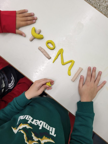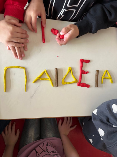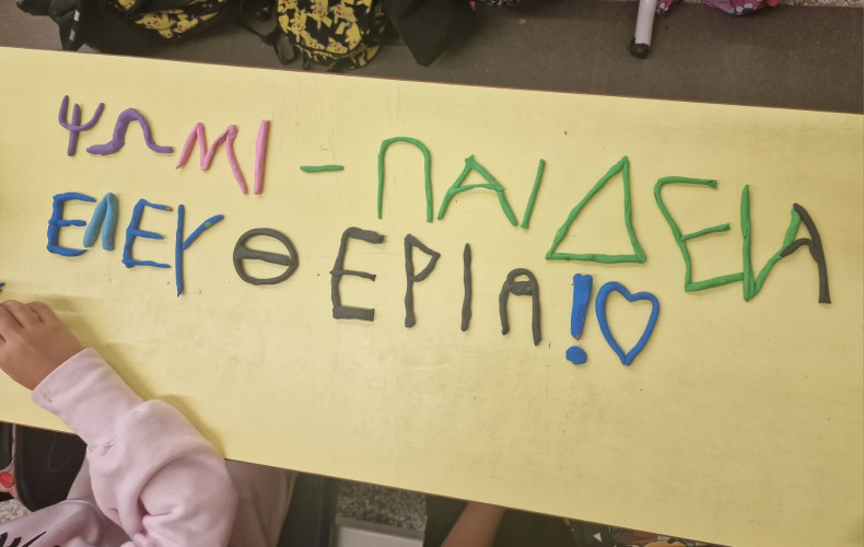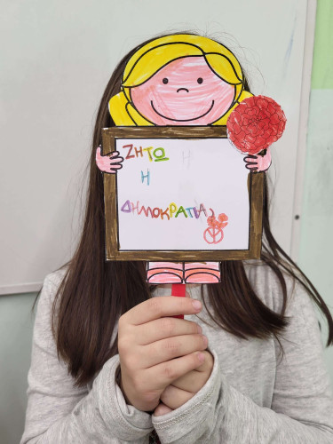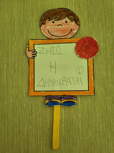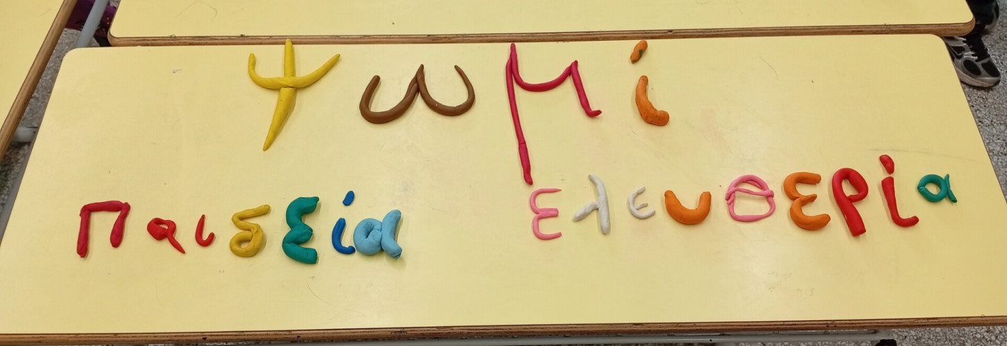 17 Νοεμβρίου 2025Τα πρωτάκια μας αφού παρακολούθησαν τη γιορτή που ετοίμασαν οι μαθητές της Δ΄τάξης έφτιαξαν μια χάρτινη κατασκευή και «έγραψαν», ομαδικά, τα συνθήματα «Ψωμί, Παιδεία, Ελευθερία» και «Ζήτω η Δημοκρατία» με πλαστελίνη.