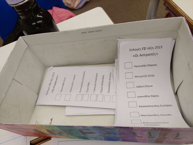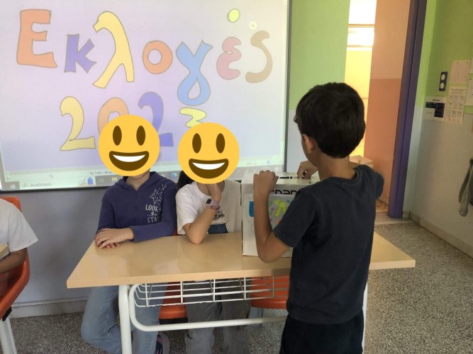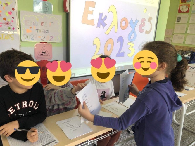 23 Φεβρουαρίου 2024Στο πλαίσιο του μαθήματος της Μελέτης Περιβάλλοντος, οι μαθητές μας της Γ΄ τάξης, αφού ολοκλήρωσαν την ενότητα του βιβλίου «Ζούμε μαζί», οργάνωσαν και πραγματοποίησαν με μεγάλη επιτυχία τις εκλογές των τμημάτων τους. Για την εναρκτήρια δράση αξιοποιήθηκαν τα αποσπάσματα γνωστής ελληνικής ταινίας που αναφέρεται στις βουλευτικές εκλογές μιας άλλης εποχής! Συγκροτήθηκαν συνδυασμοί, συντάχθηκαν προεκλογικά προγράμματα για τη διεκδίκηση των μαθητικών τους δικαιωμάτων και συστάθηκε εφορευτική επιτροπή. Τα ψηφοδέλτια και οι κατάλογοι ετοιμάστηκαν με κάθε επισημότητα, καθώς οι υποψήφιοι παρουσίασαν στους δημοσιογράφους και το ευρύτερο κοινό τα μελλοντικά τους σχέδια! Το κλίμα των εκλογών ήταν ιδιαιτέρως φιλικό και οι αντίπαλοι έσφιξαν τα χέρια μετά το αποτέλεσμα.