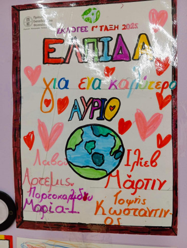 19 Νοεμβρίου 2025Στο πλαίσιο του μαθήματος της Μελέτης Περιβάλλοντος οι μαθητές μας της Γ΄ τάξης έμαθαν και στη συνέχεια ακολούθησαν βήμα προς βήμα την εκλογική διαδικασία. Αφού ετοίμασαν τους εκλογικούς καταλόγους και τα ψηφοδέλτια ορίστηκε εφορευτική επιτροπή και στήθηκε η κάλπη. Οι συνδυασμοί ολοκληρώθηκαν, οι αφίσες τυπώθηκαν και οι υποψήφιοι είναι έτοιμοι να εκφωνήσουν τους προεκλογικούς λόγους που έγραψαν. Με βιωματικό τρόπο τα παιδιά κατανόησαν πώς λειτουργεί η ψηφοφορία και γιατί είναι τόσο σημαντική η συμμετοχή όλων μας στις αποφάσεις μιας ομάδας. Φυσικά τηρήθηκε το απόρρητο της ψήφου.