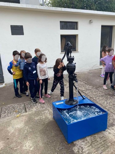 23 Οκτωβρίου 2023Οι μαθητές μας της Β΄ τάξης επισκέφθηκαν το Μουσείο Ύδρευσης Θεσσαλονίκης την Τετάρτη 18 Οκτωβρίου, στο πλαίσιο του προγράμματος «Οι νερό… εξερευνητές» του Εργαστηρίου Δεξιοτήτων «Φροντίζω το περιβάλλον». Στο μουσείο τα παιδιά παρακολούθησαν το πρόγραμμα «Η ζωντανή ιστορία του νερού» και μέσα από αυτό έμαθαν για την εξέλιξη του δικτύου ύδρευσης, ξεκινώντας από την εποχή του νερουλά ως σήμερα, ήρθαν σε επαφή με ατμομηχανές και πετρελαιομηχανές και πειραματίστηκαν με τη λειτουργία τους, δοκίμασαν παραδοσιακές μεθόδους άντλησης νερού και στο τέλος ζωγράφισαν μια στάμνα, που πήραν ως ενθύμιο φεύγοντας για να στολίσουν την τάξη τους. Ήταν για όλους μια ευχάριστη και εποικοδομητική εμπειρία!