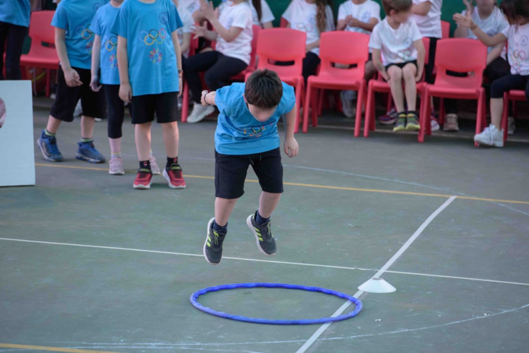 19 Μαΐου 2025Τη Δευτέρα 19 Μαΐου σε μια εντυπωσιακή παρουσίαση οι μαθητές και οι μαθήτριες της Α΄ τάξης παρουσίασαν με ενθουσιασμό μια ξεχωριστή γιορτή αφιερωμένη στον ολυμπισμό και στην ευγενή άμιλλα. Στο γήπεδο μπάσκετ του Σχολείου μας άναψε η δική μας φλόγα, σηματοδοτώντας την έναρξη των σχολικών μας αγώνων. Η τελετή αφής και η λαμπαδηδρομία έδωσαν το σήμα για την αρχή ενός απολαυστικού απογεύματος με θέμα τους Ολυμπιακούς Αγώνες. Τα παιδιά πήραν μέρος σε μια σειρά αθλητικών δραστηριοτήτων, όπως καλαθοσφαίριση, ενόργανη γυμναστική, ποδόσφαιρο, καλλιτεχνική κολύμβηση και πυγμαχία, και με γνώμονα το ομαδικό πνεύμα και τον σεβασμό στους συναθλητές τους πρόβαλαν τη σπουδαιότητα του «ευ αγωνίζεσθαι» και της συλλογικής προσπάθειας.