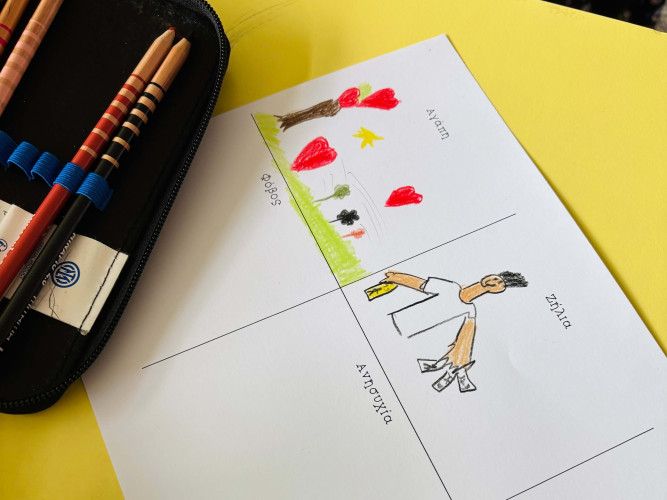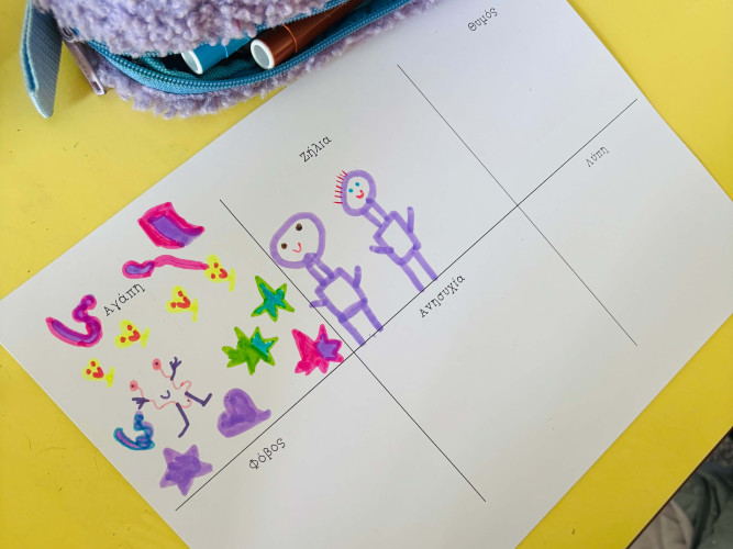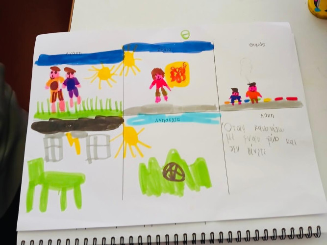 21 Οκτωβρίου 2025«Ένα κουτί µε πεταλούδες» «άνοιξε» και οι μαθητές μας της Β΄ τάξης μέσα από τις σελίδες του ομώνυμο βιβλίου μίλησαν για τα συναισθήματά τους. Τα χαρούµενα, τα δύσκολα, τα ήσυχα, τα θυµωµένα έχουν όλα θέση µέσα µας καθηµερινά γιατί όπως οι πεταλούδες, έτσι κι αυτά χρειάζονται φροντίδα για να µπορέσουν να πετάξουν. Μετά τη συζήτηση ακολούθησε η δημιουργία. Το κάθε παιδί έκανε τη δική του ζωγραφιά προσπαθώντας να δώσει χρώµα και πραγµατική διάσταση στα συναισθήµατά του, ώστε να τα αγκαλιάσει όλα χωρίς φόβο. Μια µικρή αλλά ουσιαστική υπενθύµιση ήταν ότι η ψυχική µας υγεία ανθίζει όταν µαθαίνουµε να ακούµε και να αγαπάµε τον εαυτό µας.