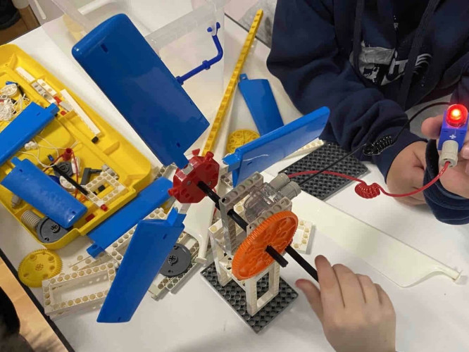 16 Ιανουαρίου 2025Οι μαθητές μας της Ε΄ τάξης στο πλαίσιο των Εργαστηρίων Δεξιοτήτων STEM-Εκπαιδευτική ρομποτική επισκέφθηκαν το κέντρο του STEM Education συμμετέχοντας στο πρόγραμμα «Ανανεώσιμες Πηγές Ενέργειας και Ανεμογεννήτριες». Εκεί, έμαθαν για τις επιπτώσεις της χρήσης των ορυκτών καυσίμων στο περιβάλλον καθώς επίσης και με ποιο τρόπο αυτά επηρεάζουν τη θερμοκρασία της γης. Συζήτησαν ακόμα για τη ρύπανση και τη μεταβολή του παγκόσμιου κλίματος, αλλά και για τη χρησιμότητα των ανανεώσιμων πηγών ενέργειας. Ο ήλιος, ο άνεμος, το νερό είναι ενεργειακές πηγές που υπάρχουν σε αφθονία στο περιβάλλον και μπορούν να γίνουν οι «αρωγοί» για έναν πιο βιώσιμο πλανήτη. Η πιο διασκεδαστική στιγμή; Τα παιδιά συναρμολόγησαν τα κομμάτια από τα μικρά τουβλάκια και κατασκεύασαν τις δικές τους ανεμογεννήτριες, μαθαίνοντας παράλληλα πώς μπορούμε να αξιοποιήσουμε τη δύναμη του ανέμου.