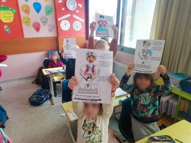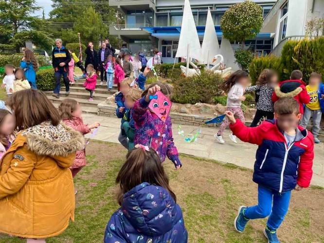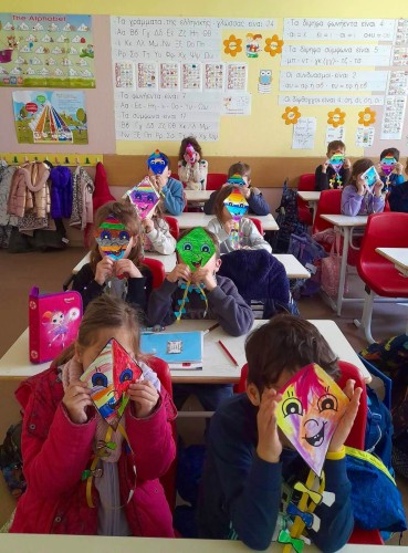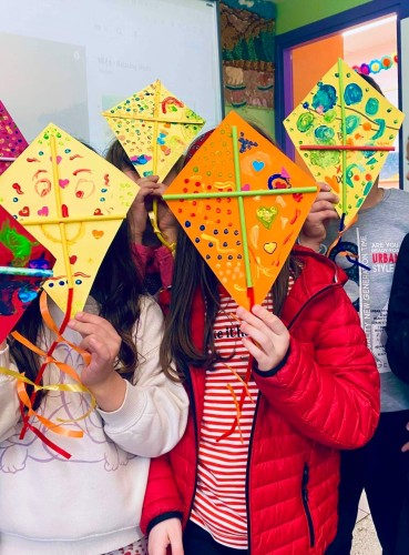 Συζήτησαν για τα ήθη και τα έθιμα του τόπου μας, έμαθαν το τραγουδάκι της κυράς Σαρακοστής και τη ζωγράφισαν. Στη συνέχεια, δημιούργησαν θεματικές κατασκευές όπως χαρταετούς και μάσκες, έπλασαν με τα χεράκια τους την κυρά Σαρακοστή και έστησαν γαϊτανάκι στην Αυλή μας.