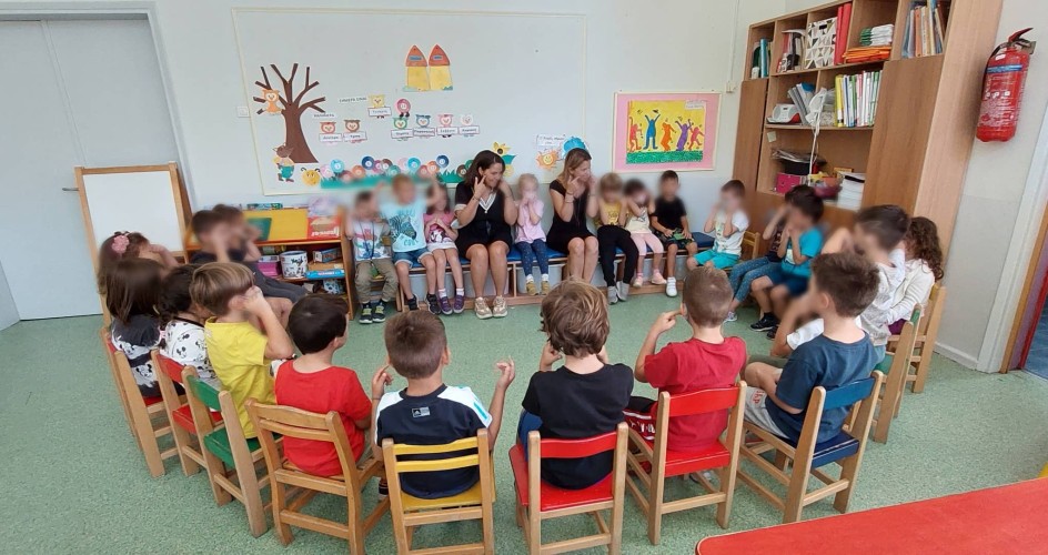 - Καθίσαμε κυκλικά σε παρεούλα και μάθαμε το τραγουδάκι «Καλημέρα»