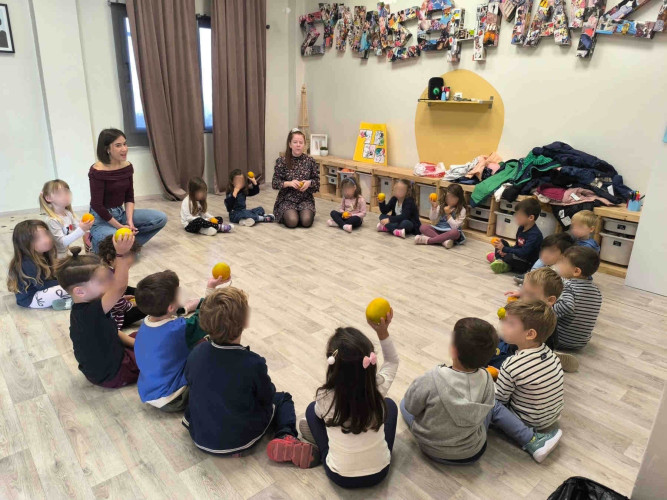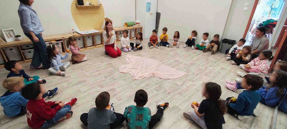 15 Οκτωβρίου 2025Την Τρίτη 13 και την Τετάρτη 14 Οκτωβρίου τα προνηπιάκια μας επισκέφτηκαν το Κέντρο Συναισθηματικής Ανάπτυξης για παιδιά «Συναισθηματίζειν». Μέσα από έναν καθρέπτη, το κάθε παιδί ξεχωριστά άρχισε να παρατηρεί τα δικά του μοναδικά χαρακτηριστικά και έπειτα εντόπισε διαφορές αλλά και ομοιότητες με τους συμμαθητές του. Στη συνέχεια όλοι χόρεψαν, ατομικά αλλά και σε ομάδες με τους φίλους τους. Κατόπιν, κάθε μαθητής παρατήρησε με προσοχή ένα πορτοκάλι που του δόθηκε και μετά τα ανακάτεψαν όλα μεταξύ τους. Όταν προσπάθησαν να ξαναβρούν το δικό τους πορτοκάλι, δεν τα κατάφεραν. Έτσι, με βιωματικό τρόπο κατάλαβαν ότι δεν έχει σημασία η εξωτερική εμφάνιση, αλλά η μοναδικότητα του καθενός.