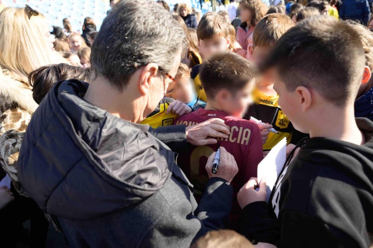 01 Φεβρουαρίου 2024Την Πέμπτη 1 Φεβρουαρίου, στο πλαίσιο της Πανελλήνιας Ημέρας Φιλάθλου, είχαμε τη χαρά να υποδεχτούμε στο Σχολείο μας δυο ζωντανούς θρύλους του ποδοσφαίρου, τις παλιές δόξες του ΠΑΟΚ, του ΑΡΗ και της Εθνικής ομάδας, Κούλη Αποστολίδη και Γιάννη Βένο αντίστοιχα, καθώς και τον γνωστό δημοσιογράφο-αθλητικογράφο και αντιπρόεδρο της ΠΟΕΣΥ, Γιάννη Βοϊτσίδη. Οι τρεις τους, με αφορμή τη θλιβερή επέτειο της δολοφονίας του Άλκη Καμπανού, μίλησαν σε όλα τα παιδιά μας του Δημοτικού για τη βία στα γήπεδα, την άμιλλα στον αθλητισμό και τον διαχωρισμό μεταξύ φιλάθλου και οπαδού. «Ο αθλητισμός είναι ζωή και η ζωή είναι φιλίες και όχι ανταγωνισμός και μισαλλοδοξία», ήταν το μήνυμα που έδωσαν στους μαθητές μας μέσα από ιστορίες της αθλητικής τους πορείας που μοιράστηκαν μαζί τους. Τα παιδιά ενθουσιάστηκαν και εν μέσω επευφημιών οι δύο σπουδαίοι παλαίμαχοι υπέγραψαν αυτόγραφα ζώντας ξανά τις παλιές τους δόξες!