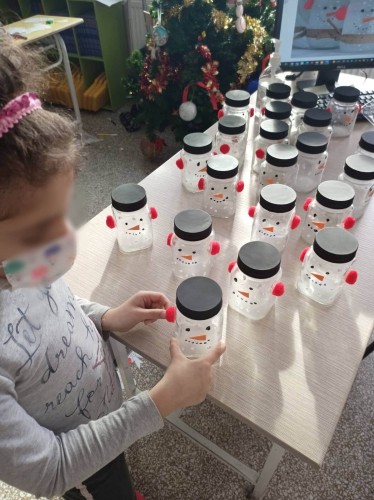 22 Δεκεμβρίου 2021Τα πρωτάκια μας μαζί με τις δασκάλες τους ετοίμασαν με πολύ κέφι και… φαντασία τις χριστουγεννιάτικές κατασκευές τους στο πλαίσιο των δια ζώσης δράσεων του 26ου Χριστουγεννιάτικου Φιλανθρωπικού Bazaar μας. Κηροπήγια χιονάνθρωποι, χριστουγεννιάτικες μπάλες και δεντράκια γεμισμένα με γλυκά και παιχνιδάκια ήταν μερικά μόνο από τα δημιουργήματα των παιδιών μας για καλό σκοπό!