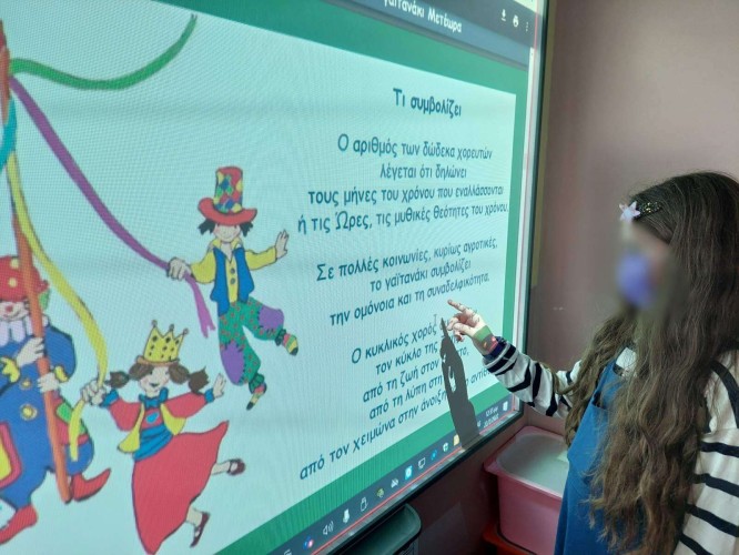 23 Φεβρουαρίου 2022Το Γαϊτανάκι με τα πολύχρωμα γαϊτάνια του έρχεται από τον Πόντο και τη Μ. Ασία, ταξιδεύει με τη Ζωρζ Σαρή σ’ όλα τα παιδιά του κόσμου και γυρίζει εφτά όγδοα εδώ, στο Σχολείο μας, με τους μαθητές της Γ’ Τάξης και τη μουσικό τους.