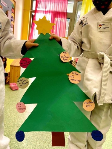 05 Ιανουαρίου 2022Τα νηπιάκια μας μαζί με την καθηγήτρια των Αγγλικών τους έκαναν μια σειρά από χριστουγεννιάτικες δραστηριότητες και βίωσαν και αυτά τη μαγεία των ημερών. Ειδικότερα, έφτιαξαν ένα δέντρο, όπου κάθε μπάλα του αντιστοιχούσε σε μία μέρα και μια δοκιμασία ‘‘Christmas Challenges’’! Ακόμη, έγραψαν στα αγγλικά γράμμα στον ‘Αι Βασίλη και παρακολούθησαν στην γιγαντοοθόνη το “Christmas Carol με τον Σκρουτζ”. Τέλος, τραγούδησαν, έφτιαξαν Christmas Puppets μαριονέτες και έλυσαν χριστουγεννιάτικα κουίζ!