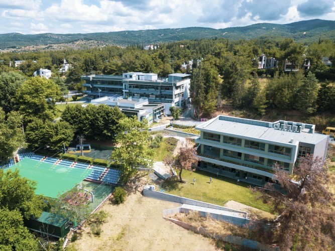 Our school is situated in Elaiones of Pylaia, in an 18 acres environment, full of trees and flowers, in the heart of nature, enabling students to play in a healthy environment, away from the noise and the pollution of the city.