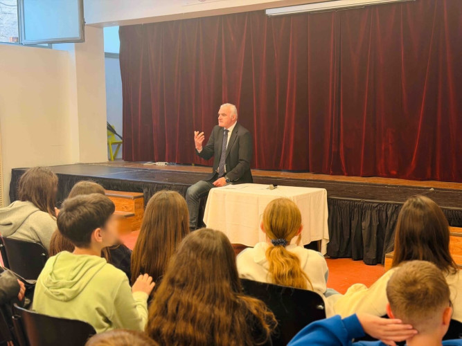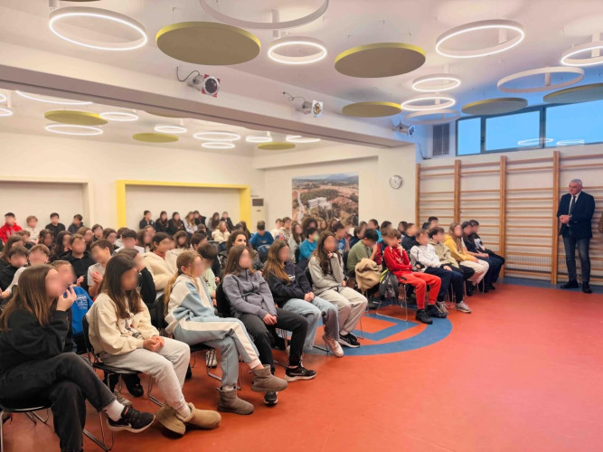 09 Φεβρουαρίου 2026Τη Δευτέρα 9 Φεβρουαρίου, με αφορμή την Παγκόσμια Ημέρα Ελληνικής Γλώσσας οι μαθητές μας παρακολούθησαν στο Σχολείο μας ενημερωτική ομιλία. Δημοκρατία, φιλοσοφία, ιστορία, λογική είναι μόνο κάποιες από τις αμέτρητες λέξεις που η μοναδικότητα τους βρίσκεται στην ελληνική γλώσσα. Τα παιδιά μέσα από τη συζήτηση που έκαναν με τον διευθυντή του δημοτικού, Στέργιο Καλφόπουλο και τον δάσκαλο, Χρήστο Κιοσσέ είχαν την ευκαιρία να αναγνωρίσουν τη σημασία τη διαχρονικότητά της. πως έχουμε χρέος να προστατεύσουμε τη γλώσσα μας καθώς είναι κομμάτι του πολιτισμού μας.
