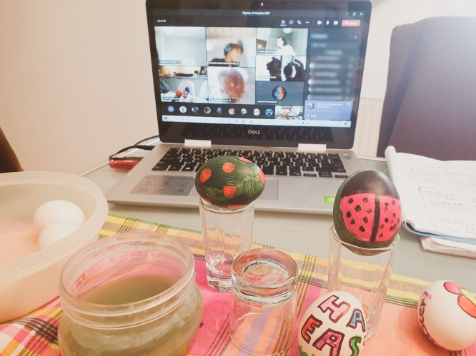 30 Απριλίου 2021We may be 3rd graders but when it comes to egg dyeing, we rock! Οι μαθητές μας της Γ΄ τάξης στο μάθημα των Αγγλικών την Παρασκευή 23 Απριλίου έβαψαν και διακόσμησαν τα πασχαλινά τους αυγά με υλικά όπως τέμπερες, μπογιές και glitter και ευχήθηκαν: «Happy Easter everyone!».