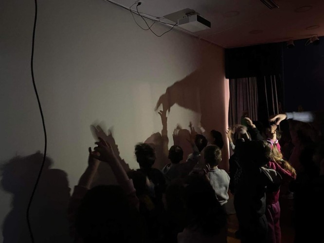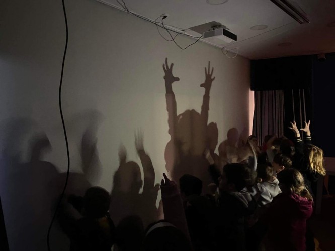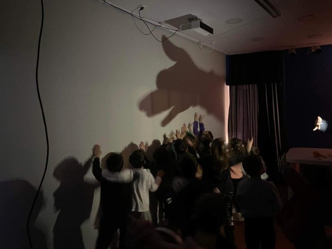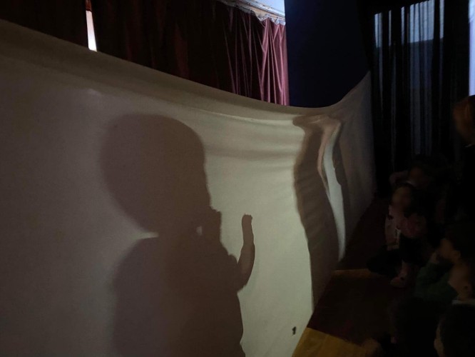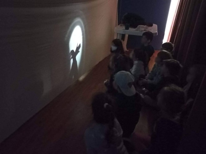 Ακόμη, δίνουν τη δική τους παράσταση θεάτρου σκιών και ανακαλύπτουν τη μαγεία του από μία άλλη οπτική, κουνώντας τα ίδια τις φιγούρες του Καραγκιόζη και αποτυπώνοντας τις δικές τους ιστορίες.