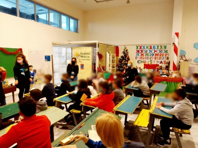 22 Δεκεμβρίου 2021Τα παιδιά μας της Δ’ Τάξης παρακολούθησαν το εκπαιδευτικό πρόγραμμα «Christmas Edition». Η ξενάγηση άρχισε με τον Μωμόγερο(έθιμο της Δράμας) που ζήτησε από τα παιδιά μας να ακολουθήσουν μια σειρά από δραστηριότητες, ώστε να «δουν» τα Χριστούγεννα! Τα παιδιά μας έλυσαν χριστουγεννιάτικους γρίφους, έφτιαξαν καραβάκια και ξύλινες κατασκευές και στο τέλος, τραγούδησαν τα παραδοσιακά κάλαντα των Χριστουγέννων. Τότε, εμφανίστηκε και πάλι ο Μωμόγερος, ο οποίος ανακοίνωσε στα παιδιά μας ότι σε λίγες μέρες έρχονται τα Χριστούγεννα και τα παιδιά μας θα τα «δουν»!