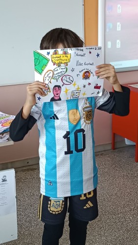30 Νοεμβρίου 2023Οι μαθητές μας της Δ΄ τάξης στο μάθημα των Αγγλικών την Τρίτη 28 Νοεμβρίου παρουσίασαν τον εαυτό τους και κάθε πτυχή της προσωπικότητάς τους μιλώντας στους συμμαθητές τους για πράγματα που τους αρέσουν και αγαπούν. Συζητώντας, περιέγραψαν την οικογένειά τους και διηγήθηκαν ιστορίες της καθημερινότητάς της. Ακόμα, κουβέντιασαν για τα χόμπι και τα ενδιαφέροντά τους και αναγνώρισαν με αυτό τον τρόπο τη μοναδικότητα του καθενός.