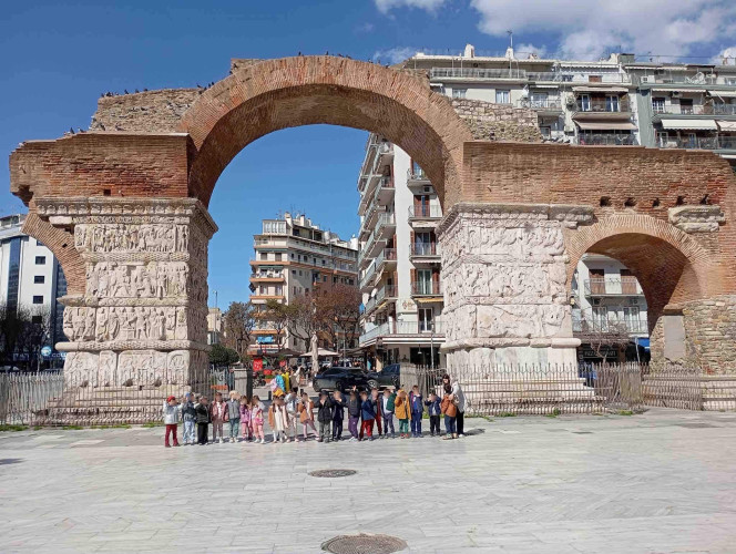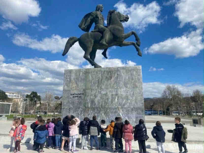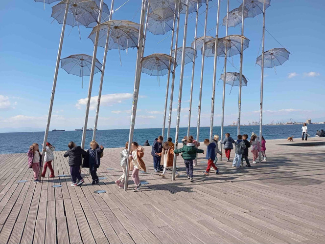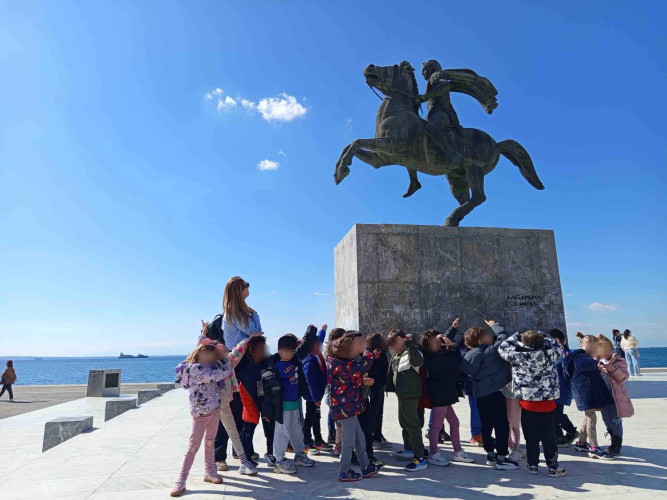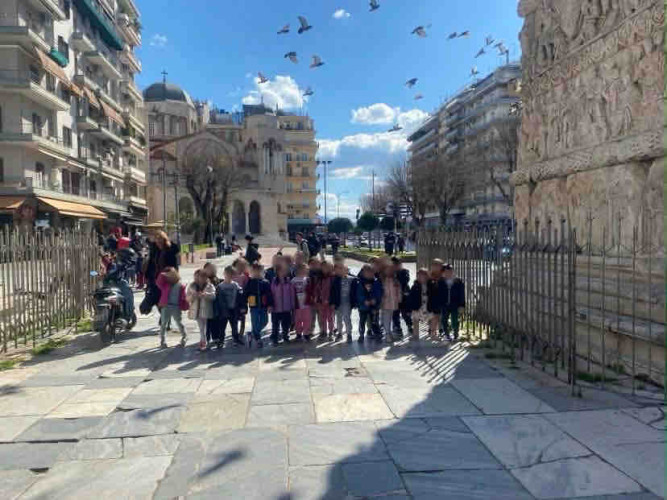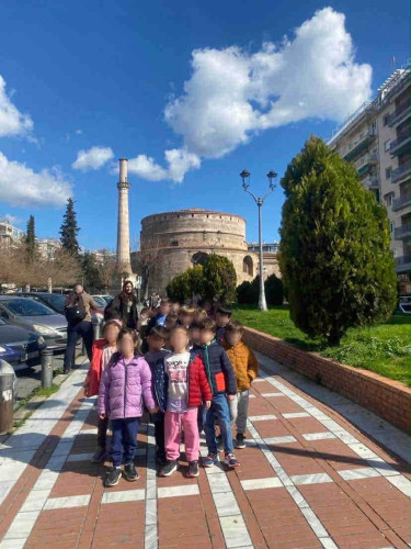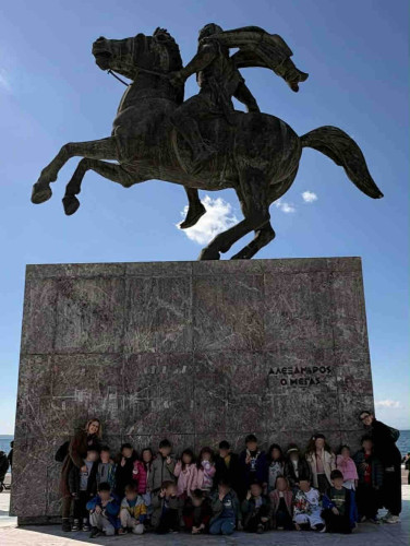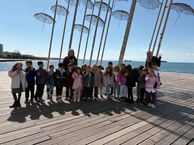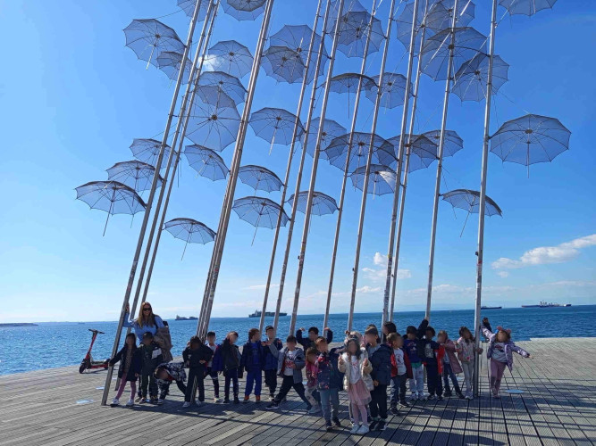 05 Μαρτίου 2026Θεσσαλονίκη, μια πόλη πολιτισμική με πολλά χρώματα και αρώματα που η ιστορία της εξελίσσεται σε κάθε στενό της. Τα νηπιάκια μαςμε στόχο να ανακαλύψουν κάθε γωνιά της πόλης μας περιηγήθηκαν με τα σχολικά μας λεωφορεία στα σημαντικότερα αξιοθέατα της Θεσσαλονίκης. Η ξενάγηση ξεκίνησε από τα κάστρα με θέα ολόκληρο τον Θερμαϊκό κόλπο, συνεχίστηκε στη Ροτόντα και έπειτα τα παιδιά κατευθύνθηκαν στην Καμάρα. Η τελευταία στάση της διαδρομής ήταν στο άγαλμα του Μ. Αλεξάνδρου, όπου εκεί ενημερώθηκαν για τη ζωή και το έργο του σπουδαίου στρατηλάτη. Απολαμβάνοντας την όμορφη ημέρα περπάτησαν και βρέθηκαν στο εμβληματικό εικαστικό έργο του Γιώργου Ζογγολόπουλου, «Ομπρέλες» στη νέα παραλία. Οι μαθητές θαύμασαν τα μνημεία και έμαθαν βιωματικά για το παρελθόν που διαδραματίστηκε στην πόλη μας.