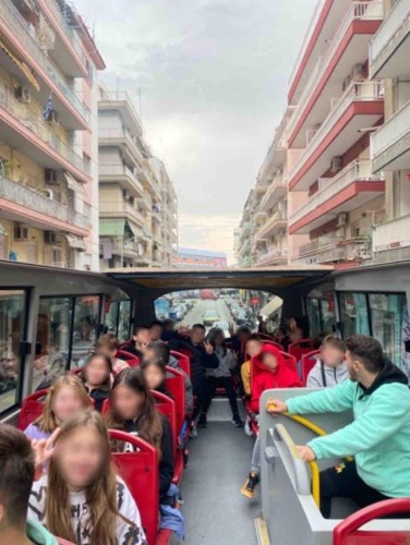 29 Φεβρουαρίου 2024Την Τρίτη 27 και την Πέμπτη 29 Φεβρουαρίου, στο πλαίσιο των Εργαστηρίων Δεξιοτήτων, οι μαθητές μας της Ε΄ τάξης, σε συνεργασία με το κέντρο δημιουργικής απασχόλησης «Tsak Mpam» και το πρόγραμμα «Πολιτιστική Διαδρομή», είχαν τη ευκαιρία να ξεναγηθούν με το ειδικά εξοπλισμένο λεωφορείο στα ιστορικά και πολιτιστικά μνημεία της πόλης μας. Η περιήγηση ξεκίνησε από τον Λευκό Πύργο και περιλάμβανε στάσεις στα πολυάριθμα μνημεία της Θεσσαλονίκης από τους αρχαίους, ελληνιστικούς, ρωμαϊκούς και βυζαντινούς χρόνους ως σήμερα. Στο τέλος τα παιδιά μας απόλαυσαν την ηλιόλουστη μέρα συμμετέχοντας σε αθλητικές δραστηριότητες στο πάρκο της νέας παραλίας.