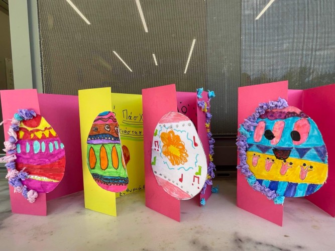 02 Μαΐου 2024Τις ημέρες πριν και μετά το Πάσχα, στο πλαίσιο του Προγράμματος Δημιουργικής Απασχόλησης, τα παιδιά μας του Δημοτικού μπήκαν στο πνεύμα της μεγάλης γιορτής μέσα από διασκεδαστικές εκπαιδευτικές δραστηριότητες. Οι μαθητές μας έμαθαν για τα ήθη και τα έθιμα του Πάσχα, όπως τηρούνται σε διάφορα μέρη της Ελλάδας και για τη σύνδεσή τους με τη Χριστιανοσύνη, καθώς και για τον εορτασμό του Πάσχα σε άλλες χώρες. Έφτιαξαν χειροτεχνίες με τρισδιάστατους χρωματιστούς λαγούς και κοτοπουλάκια, διακόσμησαν με το δικό τους μοναδικό γούστο λαμπάδες, για να τις ανάψουν το βράδυ της Ανάστασης με το Άγιο Φως, έπλασαν με τα χεράκια τους κουλουράκια, έβαψαν πολύχρωμα πασχαλινά αυγά με μια ξεχωριστή τεχνική. Οι εκπλήξεις όμως δεν τελείωσαν εκεί! Είχαν να φέρουν εις πέρας μια αποστολή... να ξετρυπώσουν τα μικρά αβγουλάκια που ήταν κρυμμένα στην αυλή του Σχολείου μας και να κερδίσουν στο τέλος σοκολατένιους «θησαυρούς». Λέτε να τα κατάφεραν;