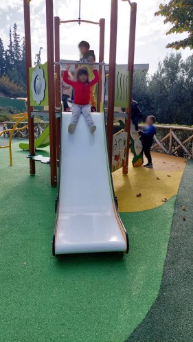 Οι μικρότεροι, έπαιξαν με τα παιχνίδια τους στις τάξεις, άκουσαν παραμυθάκια και ηρωϊκά τραγουδάκια και φυσικά, και εκείνα βγήκαν στην ολοκαίνουργια αυλή τους και χάρηκαν με την ψυχή τους τα παιχνίδια και τη φύση.