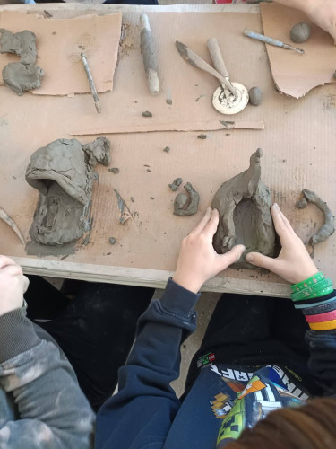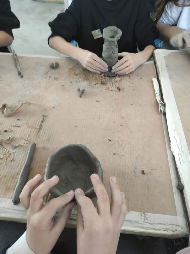 25 Φεβρουαρίου 2026Τι καλύτερο από το να μαθαίνεις Ιστορία ... με τα χέρια σου; Την Τρίτη 24 και την Τετάρτη 25 Φεβρουαρίου οι μαθητές μας της Γ΄τάξης επισκέφθηκαν το Messy Play Hehe και έγιναν μικροί καλλιτέχνες και εξερευνητές στον κόσμο του πηλού. Εκεί, μίλησαν για τον πηλό, έμαθαν πώς τον χρησιμοποιούσαν από τα αρχαία χρόνια και φυσικά λέρωσαν τα χέρια τους δημιουργώντας τα δικά τους αγγεία και άλλα αντικείμενα. Τα παιδιά πειραματίστηκαν, δοκίμασαν ιδέες και εκφράστηκαν με μοναδικό τρόπο, βλέποντας τις δημιουργίες τους να παίρνουν ζωή μπροστά στα μάτια τους. Κάθε αντικείμενο, μικρό ή μεγάλο, ήταν μια μικρή ιστορία γεμάτη έμπνευση και φαντασία.