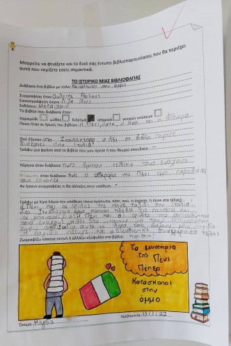 Όλα τα παιδιά μας διάβασαν αρκετά βιβλία, όμως μία μαθήτρια, κατάφερε να διαβάσει περισσότερα από είκοσι, να τα εικονογραφήσει και να παρουσιάσει στους συμμαθητές της.