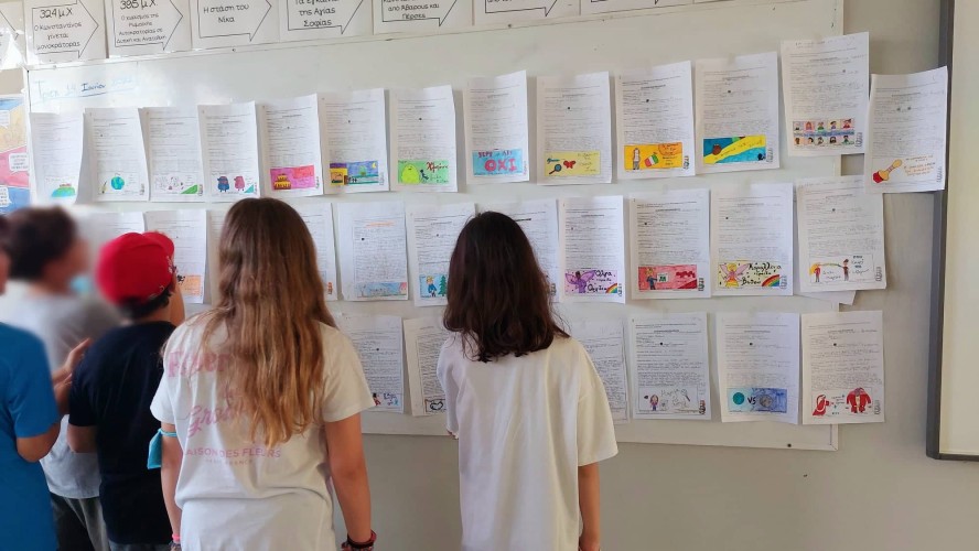 Πώς; Στο πλαίσιο του προγράμματος της φιλαναγνωσίας που βρισκόταν σε εφαρμογή καθ’ όλη τη διάρκεια της χρονιάς κλήθηκαν με την παρότρυνση του δασκάλου τους να δημιουργήσουν τις δικές τους σύντομες παρουσιάσεις έργων, οι οποίες θα βασίζονταν στα κείμενα που διάβασαν. Τα παιδιά μας, έκαναν τις δικές τους αφίσες, τις οποίες κόλλησαν στον τοίχο της τάξης δημιουργώντας μια τοιχογραφία γνώσης και έμπνευσης.
