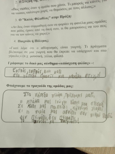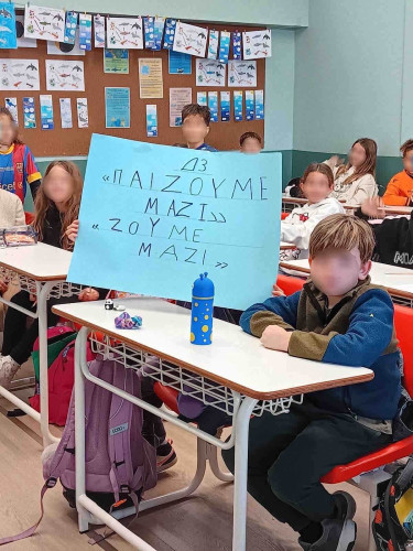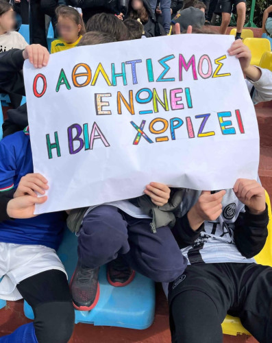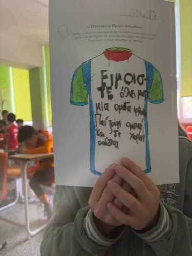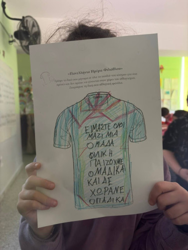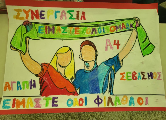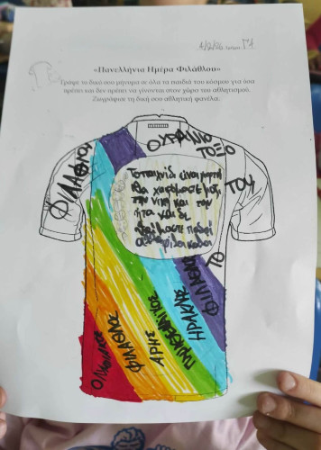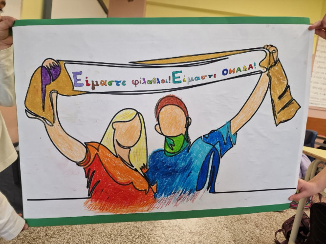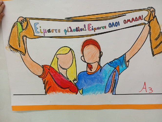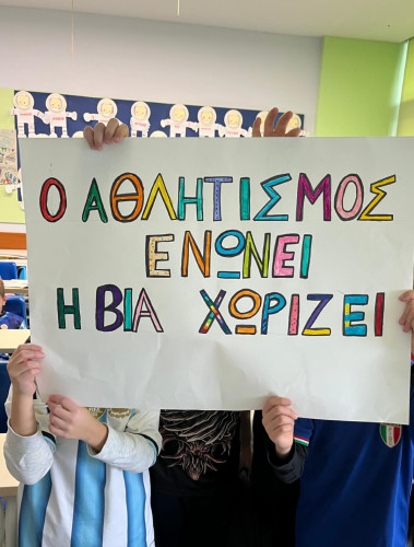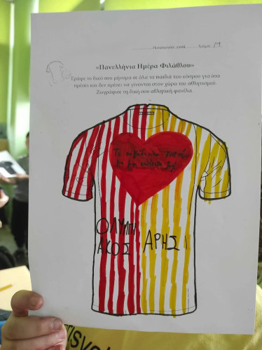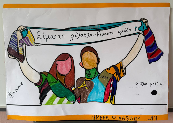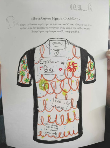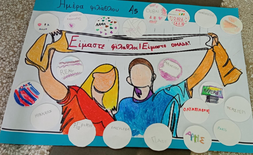 04 Φεβρουαρίου 2026Με αφορμή την Πανελλήνια Ημέρα Φιλάθλου οι μαθητές του Σχολείου μας συζήτησαν για την αποδοχή απέναντι σε όσους υποστηρίζουν μια διαφορετική ομάδα από τη δική μας. Την Τετάρτη 4 Φεβρουαρίου τα παιδιά συμμετείχαν σε ομαδικές δραστηριότητες σχεδιάζοντας δημιουργικές κατασκευές έχοντας ως σύνθημα «Η καρδιά του αθλητισμού είσαι ΕΣΥ-καμία φανέλα πάνω από τη ΖΩΗ». Ζωγράφισαν, χρωμάτισαν και έστειλαν το δικό τους μήνυμα για την προώθηση του φίλαθλου πνεύματος. Όλοι μαζί «φώναξαν» «ΟΧΙ στη βία – ΝΑΙ στον αθλητισμό! ΜΑΖΙ μπορούμε να αλλάξουμε τον κόσμο!»