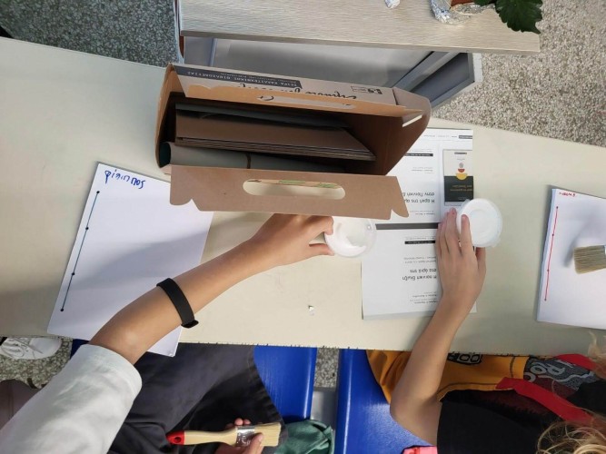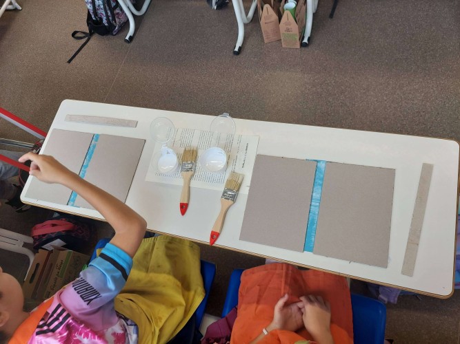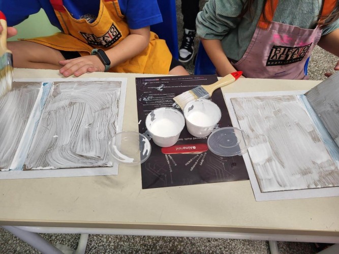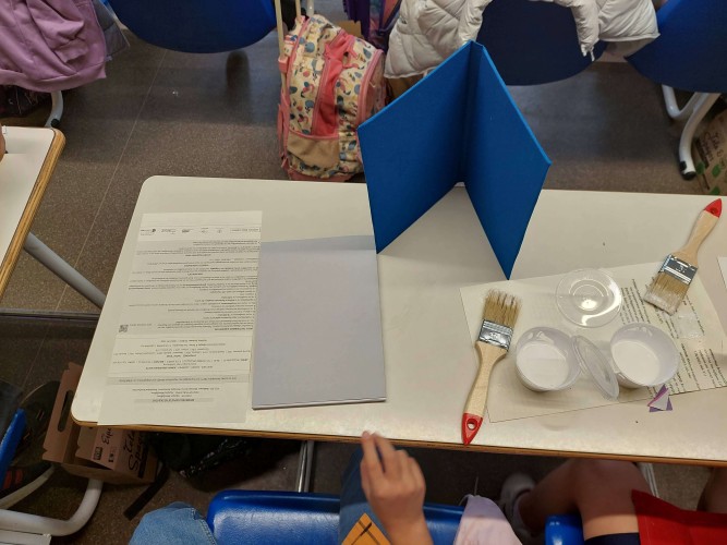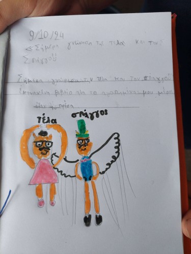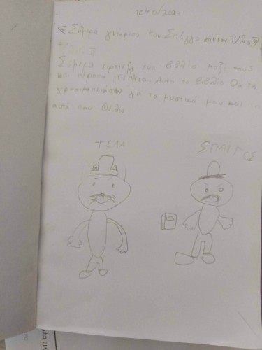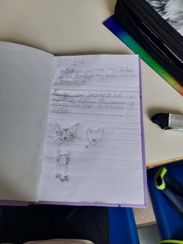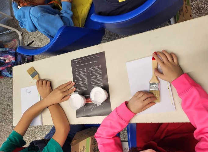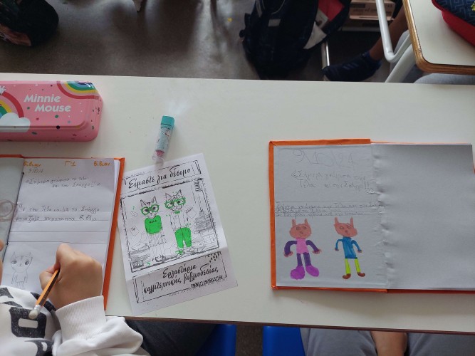 30 Οκτωβρίου 2024Τα όνειρα, τις σκέψεις και τις προσωπικές ιστορίες είναι έτοιμοι να γράψουν οι μαθητές μας της Γ΄ τάξης στο δικό τους μοναδικό βιβλίο που κατασκεύασαν με τα χεράκια τους. Με βοηθούς τους δημιουργούς ενός ιδιαίτερου Βιβλιοδετείου της πόλης μας, την «Τέλα και τον Σπάγγο», τα παιδιά μας έβαλαν τις ποδιές και ξεκίνησαν τη «δουλειά». Ένα πινέλο, εσώφυλλα, εξώφυλλα, καλύμματα, κόλλα, μια ειδική βελόνα και κλωστή ήταν τα απαραίτητα εργαλεία που περιείχε το «μαγικό» βαλιτσάκι των «έξυπνων γάτων» που μας επισκέφθηκαν στο Σχολείο μας και η βιωματική δραστηριότητα ξεκίνησε με ενθουσιασμό. Βήμα-βήμα και ακολουθώντας τις οδηγίες των υπεύθυνων οι μικροί μας «βιβλιοδέτες» δημιούργησαν ένα ολοκληρωμένο βιβλίο και με τη χειροκίνητη πρέσα ενώθηκαν απόλυτα όλα τα μέρη του. Τελευταία πινελιά: η ετικέτα, και πλέον τα παιδιά μας κρατούν τον πολυπόθητο καρπό της προσπάθειάς τους. Τώρα είναι η ώρα να γεμίσουν οι σελίδες και φυσικά το «πρώτο κεφάλαιο» είναι αφιερωμένο σε αυτή τη συναρπαστική εμπειρία. Μέσα από το παιχνίδι οι μαθητές γνώρισαν την τέχνη της βιβλιοδεσίας, αλληλεπίδρασαν μεταξύ τους και καλλιέργησαν τη φαντασία τους.