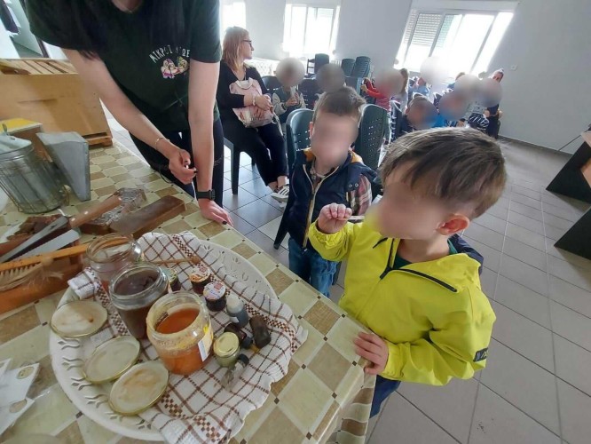 02 Ιουνίου 2023Tα παιδιά μας του Παιδικού σταθμού "Πρότυπα 2 - 4" παρακολούθησαν το πρόγραμμα της ομάδας "Μικροί ήρωες" και γνώρισαν από κοντά το θαύμα της διαδικασίας παραγωγής μελιού και τον φανταστικό κόσμο της μέλισσας. Τα μικρά μας γεμάτα θαυμασμό και περιέργεια είχαν την ευκαιρία να "καπνίσουν" με το καπνιστήρι την κυψέλη, να βγάλουν την κυρήθρα, να κόψουν το κερί και να τρυγήσουν το μέλι με την βοήθεια των ειδικών χειροκίνητων μηχανών. Επίσης, πήραν πολύτιμες πληροφορίες για τη δομή και τους νόμους της ζωής των μελισσών, τα μελισσοκομικά εργαλεία, τη στολή του μελισσοκόμου και τη διατροφική αξία του μελιού δοκιμάζοντας και τα ίδια την τροφή των "αθανάτων". Η επίσκεψη ολοκληρώθηκε με παιχνίδια και με αθλητικές δραστηριότητες από τους γυμναστές της ομάδας.