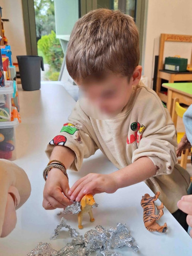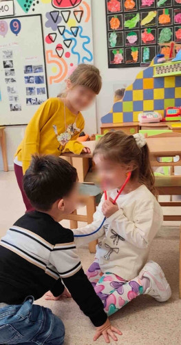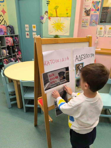 13 Οκτωβρίου 2025Από τη Δευτέρα 6 έως την Παρασκευή 10 Οκτωβρίου τα προνηπιάκια μας, στο πλαίσιο της ενότητας «Νοιαζόμαστε για τα ζώα. Φροντίζουμε τα αδέσποτα», συζήτησαν στην τάξη για τις ανάγκες που έχουν στην καθημερινότητά τους τα ζωάκια συντροφιάς και για τα προβλήματα που αντιμετωπίζουν. Στη συνέχεια, τα παιδιά μας πήραν μέρος σε παιχνίδια μίμησης ζώων. Ακόμα, στη Θεατρική Αγωγή καλλιέργησαν την ενσυναίσθησή τους, ερμηνεύοντας σωστές και λανθασμένες συμπεριφορές απέναντι στα ζώα. Έπειτα, προσπάθησαν να «σώσουν» τα «ζωάκια» που είχαν πέσει στις λάσπες κι η αποστολή τους ολοκληρώθηκε όταν τα καθάρισαν όλα. Τέλος, αντιστοίχισαν το κάθε ζώο με ένα μουσικό όργανο και κατασκεύασαν τον δικό τους σκύλο, τον οποίο μετέτρεψαν σε μαριονέτα για ατελείωτα θεατρικά παιχνίδια.